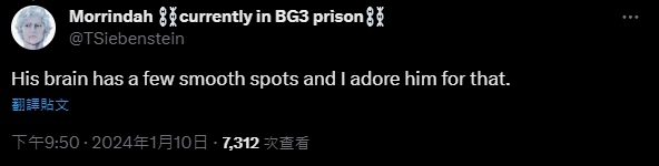 而「阿斯代倫有著大笨蛋的一面」並不會讓玩家厭惡他,相反地,這成為他魅力所在的一部份,另一位網友在回應中表示「他的大腦中有些部份有點光滑,這也是我喜愛他的原因之一。」