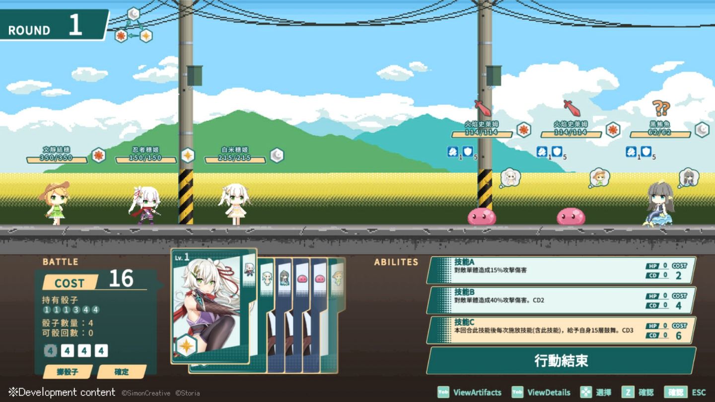 圍繞骰子展開的戰鬥系統。每隻角色都有專屬技能與骰面,透過擲骰決定行動點數,特殊骰面還能發揮強化效果!合理安排點數運用,擊倒各種道路上的各種對手。