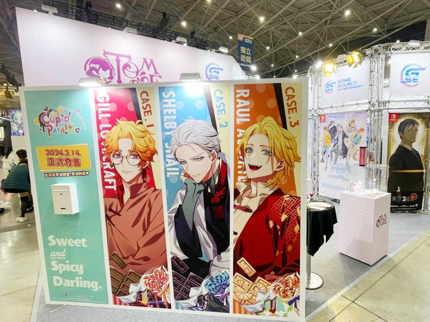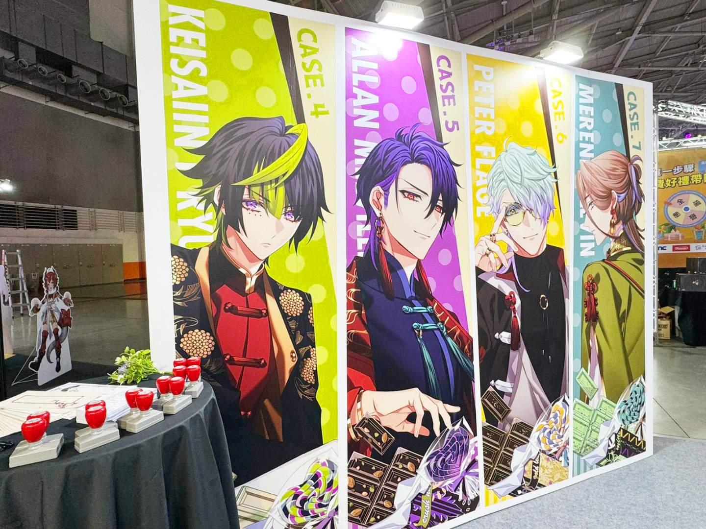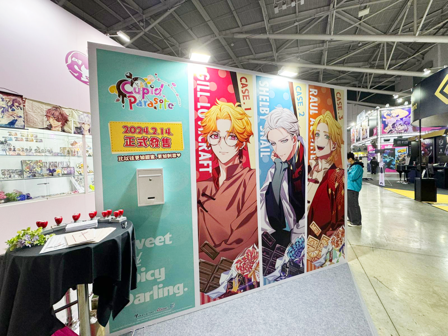 農曆新年即將到來,身穿中華風服飾的Parasite7成員們帶著充滿甜蜜氛圍的巧克力和棒棒糖,特地來到台北國際電玩展跟大家拜年啦!高達2.5米的打卡牆上展示著由Yuuya老師特意為即將在2月14日推出的《共生邱比特 -Sweet & Spicy Darling.-》Nintendo Switch™亞洲盒裝版所繪製的全新封面圖,這也是該立繪首次在線下活動中亮相。歡迎粉絲們也穿上中華風的服飾,親臨現場與他們共同留下美好合照喔。