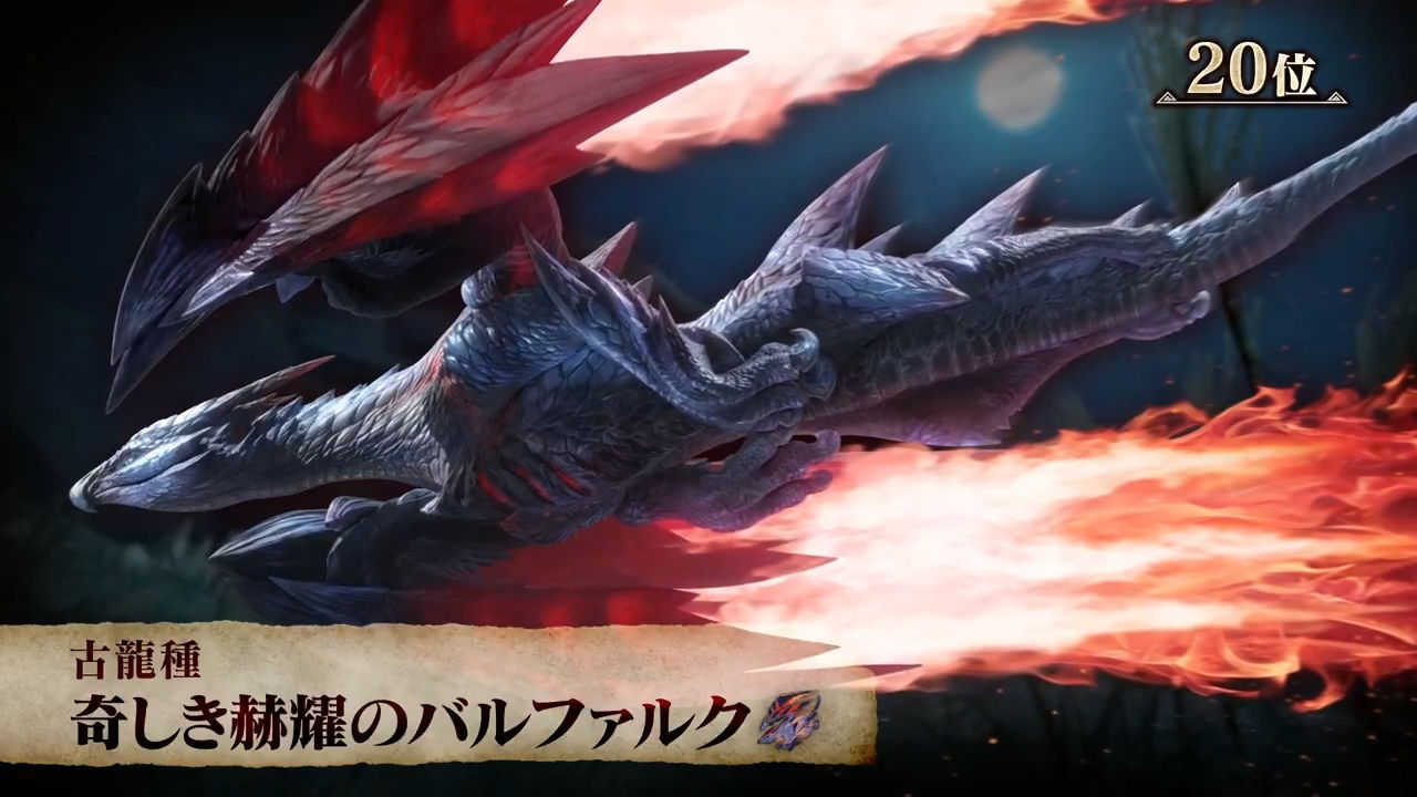 CAPCOM 宣佈將於 3 月 12 日 19 時舉辦「《魔物獵人》20 週年特備節目 supported by Universal Studios Japan」(モンスターハンター20周年記念 スペシャル番組!! Supported by ユニバーサル・スタジオ・ジャパン)預定公布 2023 年末開始舉辦的魔物總選舉 TOP 10 人氣魔物以及總數 229 的魔物排名,今日首先公布第 20 名人氣魔物