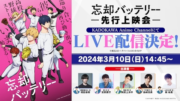 3/10 將舉行的先行上映座談會,由於事前報名者數量超過主辦方想像,所以確定追加網路轉播,可以透過 YouTube 的 KADOKAWA Anime Channel 觀看轉播。《失憶投捕》將自今年四月起開播。