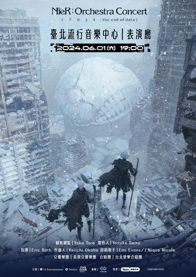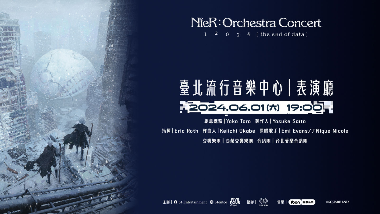 「NieR:Orchestra Concert 12024[the end of data]」將於 6 月 1 日晚間 7 點在臺北流行音樂中心表演廳正式演出。演出後更針對限量 VIP 粉絲玩家舉辦「合影見面會」,將有創意總監 Yoko Taro(橫尾太郎)、製作人 Yosuke Saito(齊籐陽介)、指揮家 Eric Roth、作曲人 Keiichi Okabe(岡部啟一)、原創歌手 Emi Evans 和 J'nique Nicole 共 6 位重點原創團隊成員出席。