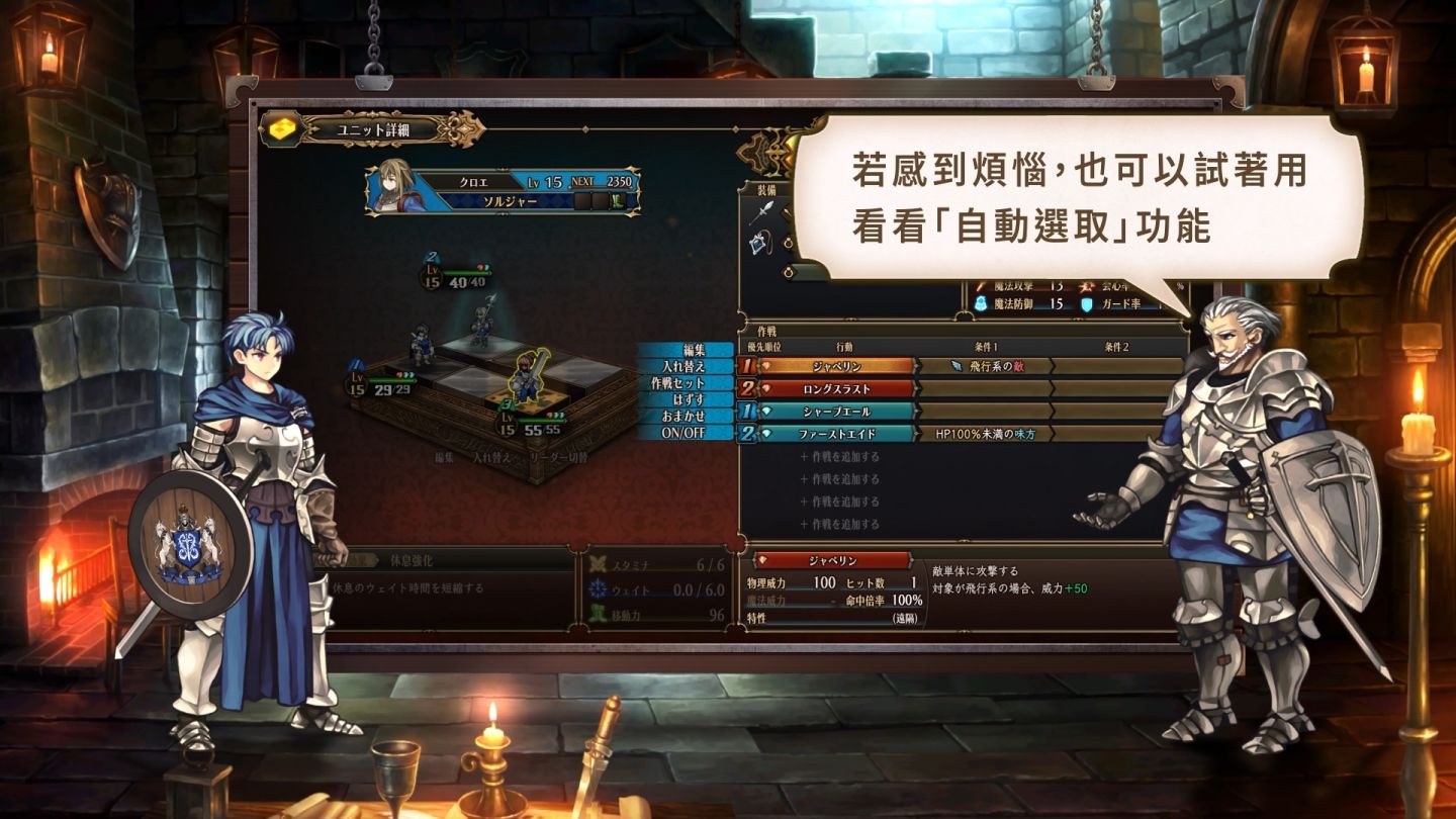 為了從帝國的支配下拯救這個世界,主人公亞連(CV:浦和希)和舊克盧尼亞聖騎士・喬瑟夫(CV:山路和弘)將在「指南影片」中為大家說明該如何行動。本系列最終回的第四彈影片「戰鬥心得篇」則介紹身處戰場(關卡)時的戰鬥方法。從夥伴部隊的出擊到遇敵時的交戰,徹底學習戰鬥基礎,做好對抗帝國的準備吧!