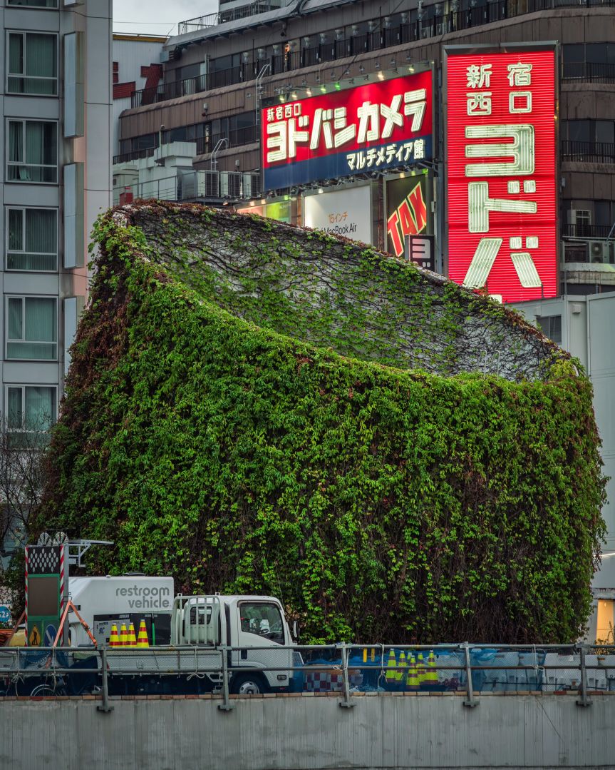 對外地觀光客來說有如巨大迷宮般複雜的東京新宿車站,這高樓林立的知名不夜城,西口廣場上卻矗立著魔物感滿滿的巨型筒狀物與周邊絢爛霓虹形成強烈對比,佈滿植物的外觀更加深未知氛圍,它的真正用途也多次引發日本網友熱論。