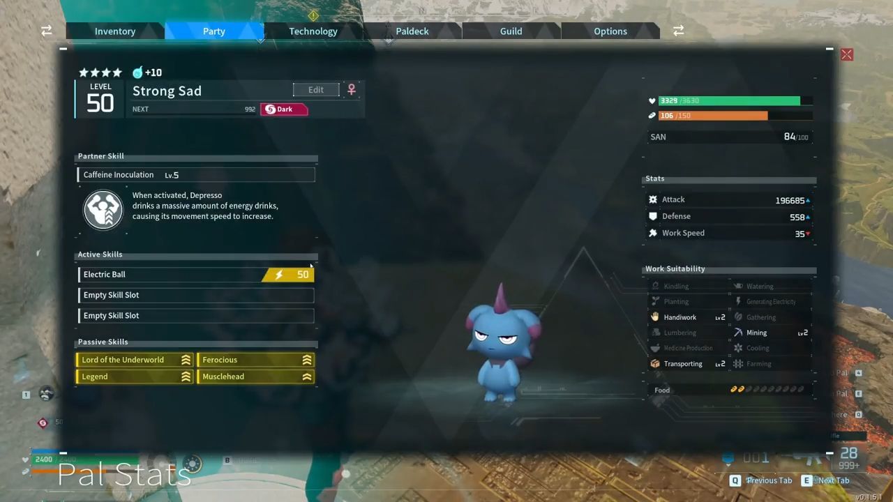 當然,這是一個 bug,在目前版本中,強化全隊某種屬性帕魯的固有技能,都可以重覆透過這方式疊加能力。以這個例子來說,啼卡爾固有技為「暗影睿智」,效果是在隊伍中時提升暗屬性帕魯攻擊力。而瞅什魔本身為暗屬性,可藉此獲得攻擊力加成。該玩家便利用重複丟棄、撿取啼卡爾的步驟,讓瞅什魔攻擊力不斷疊加上去。