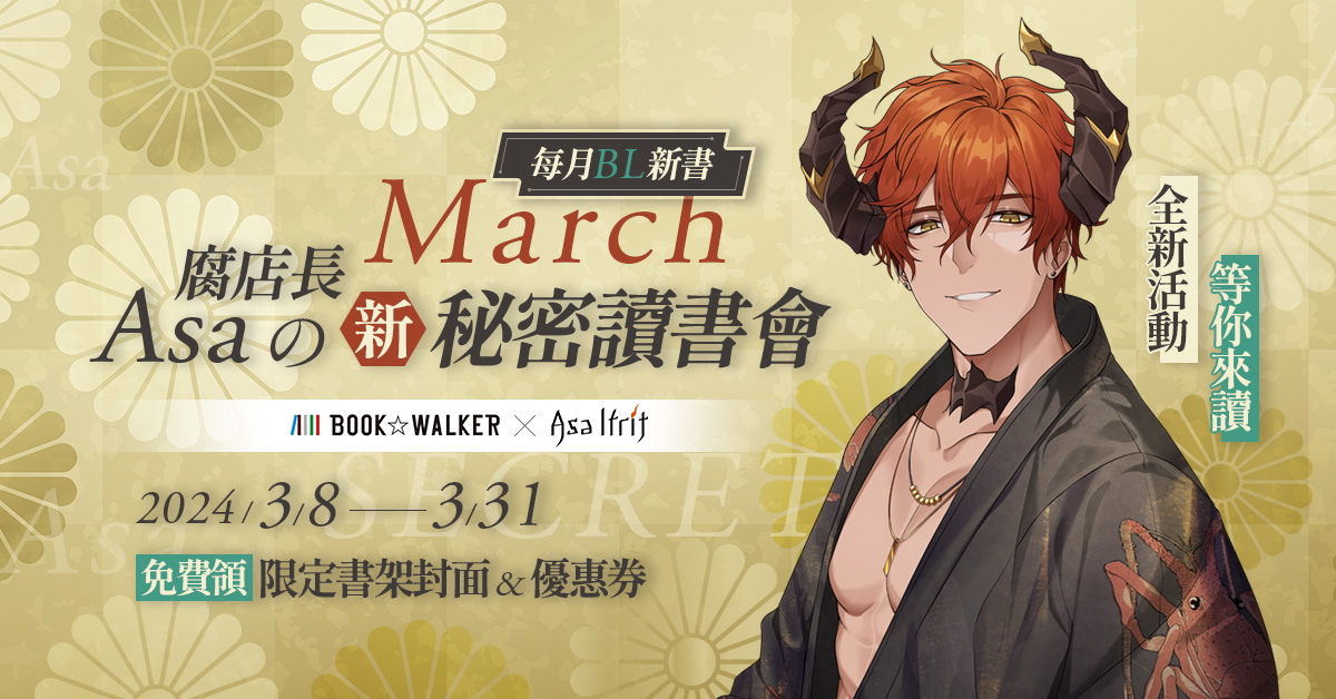 本月的 Vtuber 腐店長阿薩的「秘密讀書會」迎來新一波活動!即日起至 3/31,前往活動頁就能免費領取「限定書架封面」與「專屬優惠券」。本月精彩新書包括《我們雖是命運卻無法相容》、《秋想和春一起吃飯》新刊、《初戀陪玩大哥哥》等。頁面中的「精選完結作品區」帶大家回顧精采作品,而尚未揭密的「耽美機密排行榜」將在 3/20 由阿薩在 Youtube 直播中揭露。正式公布前,讀者們也可以前往參加社群活動,留言預測上榜書籍抽點數。喜歡 BL 作品的讀者們,記得準時收看直播節目!