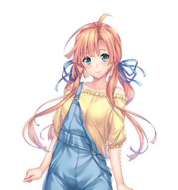 ![]() | 相倉和葉(CV:青山ゆかり/Yukari Aoyama) 同年級的少女,是主人公寄宿親戚的女兒。個性上有點兇也有點固執,常常表現出堅強的樣子。由於突然要住在一起,她和主人公的關係顯得有點尷尬,第一印象便不是太好,且有一道無形的隔閡。然而仍會為主人公著想,本性上是個會熱心幫助人的個性。 |