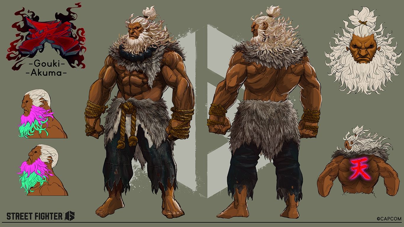 在這次公開的豪鬼造型方面,據中山總監表示,相較於前作的版本,本次登場的豪鬼除了更具威嚴外,整個髮色也都會改以白髮造型登場,在肌肉的表現方面則是參考佛像與動物來進行製作,希望能藉此創作出更棒的設計呈現在玩家們的面前。