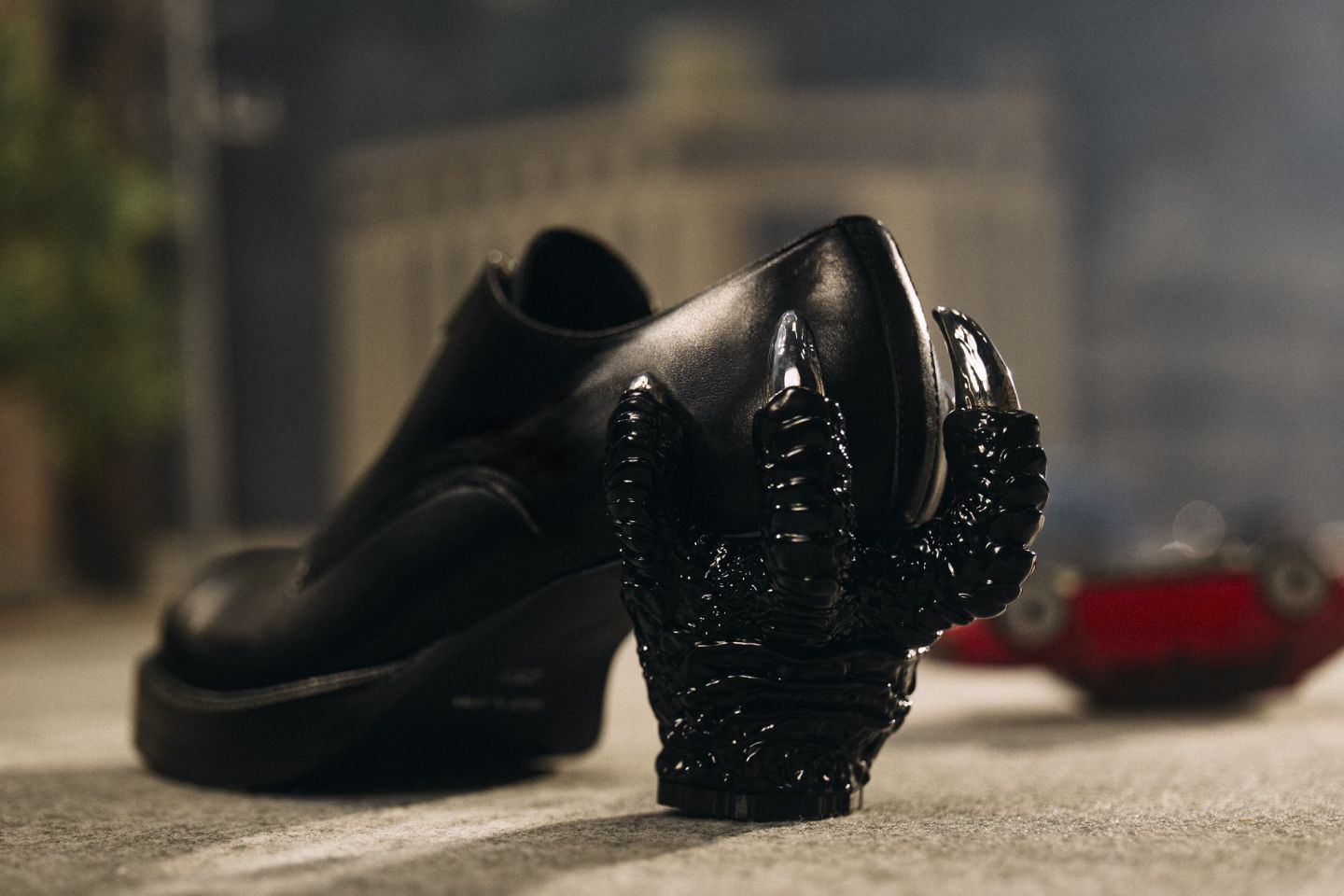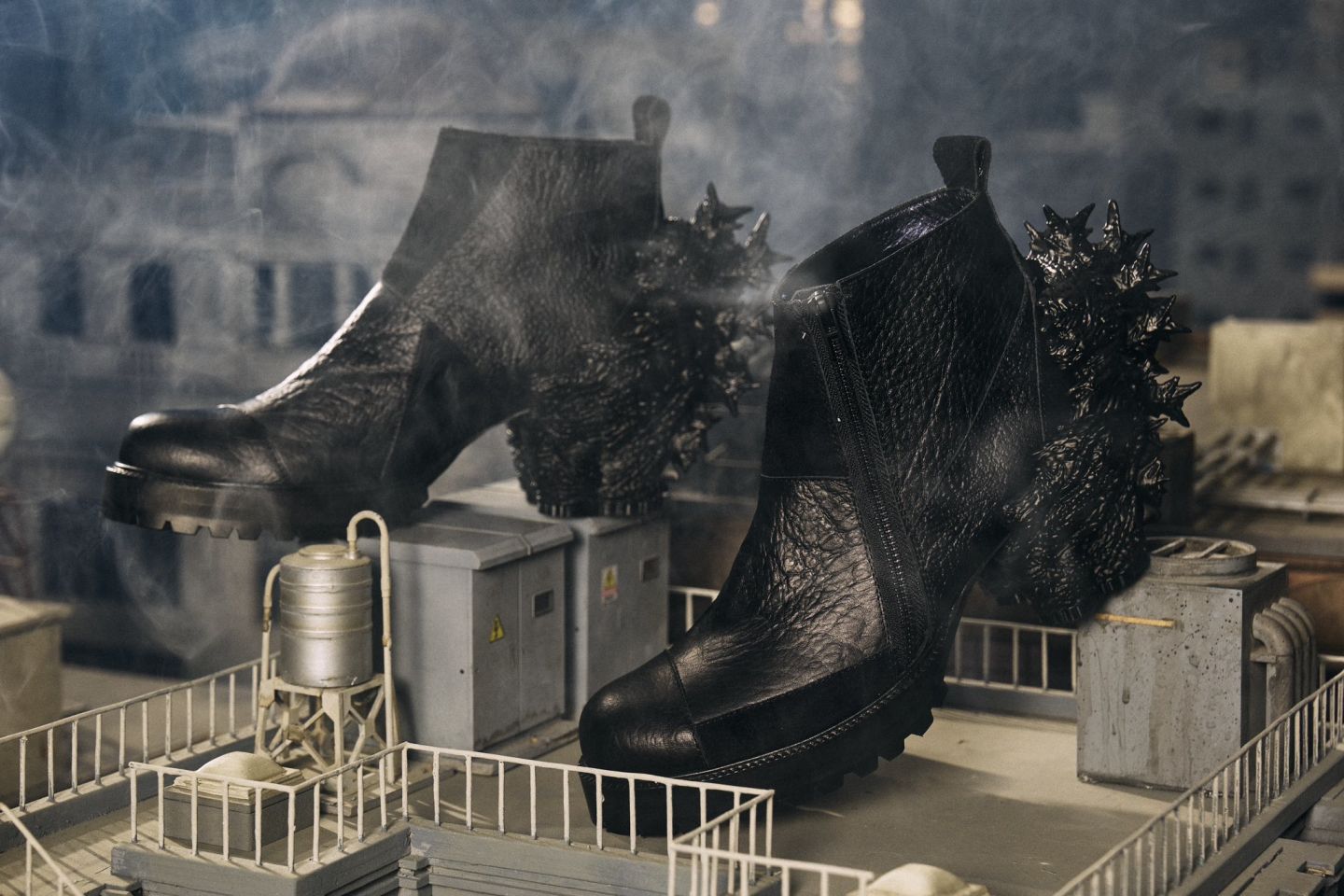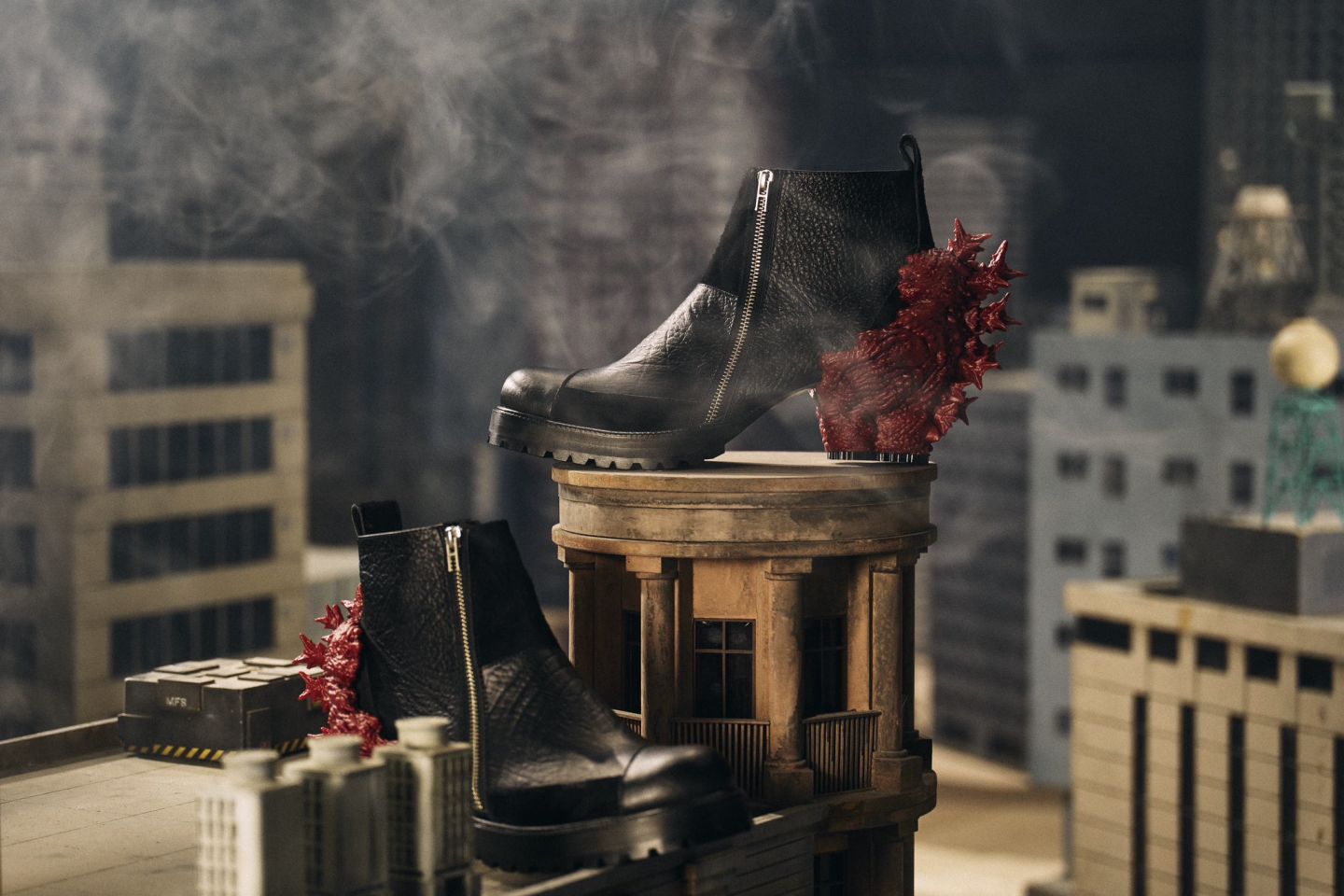 因為電影獲獎而引發話題的哥吉拉鞋,來自日本設計師松井諒祐的自創品牌 ha | za | ma。文化服裝學院出身的松井諒祐,2012年創立了自己的品牌,2014年改為現在的品牌名,如同品牌過去將手槍與象徵性感的高跟鞋結合,「反差」正是他的設計核心,而那雙用手槍握柄取代鞋跟的高跟鞋,沒想到之後意外成為哥吉拉鞋的誕生契機。