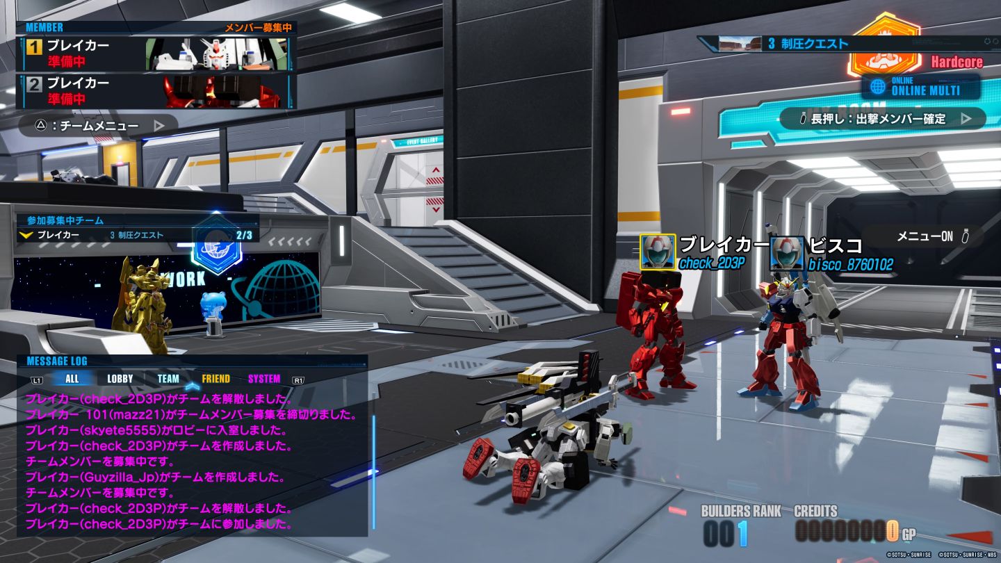 在單人教學模式下,玩家目前只有一位 NPC 隊友進行戰鬥,但是到了多人模式,可以與最多兩位玩家一同遊玩,並且在出場畫面時,欣賞到隊友們精心組裝的模型出擊英姿。