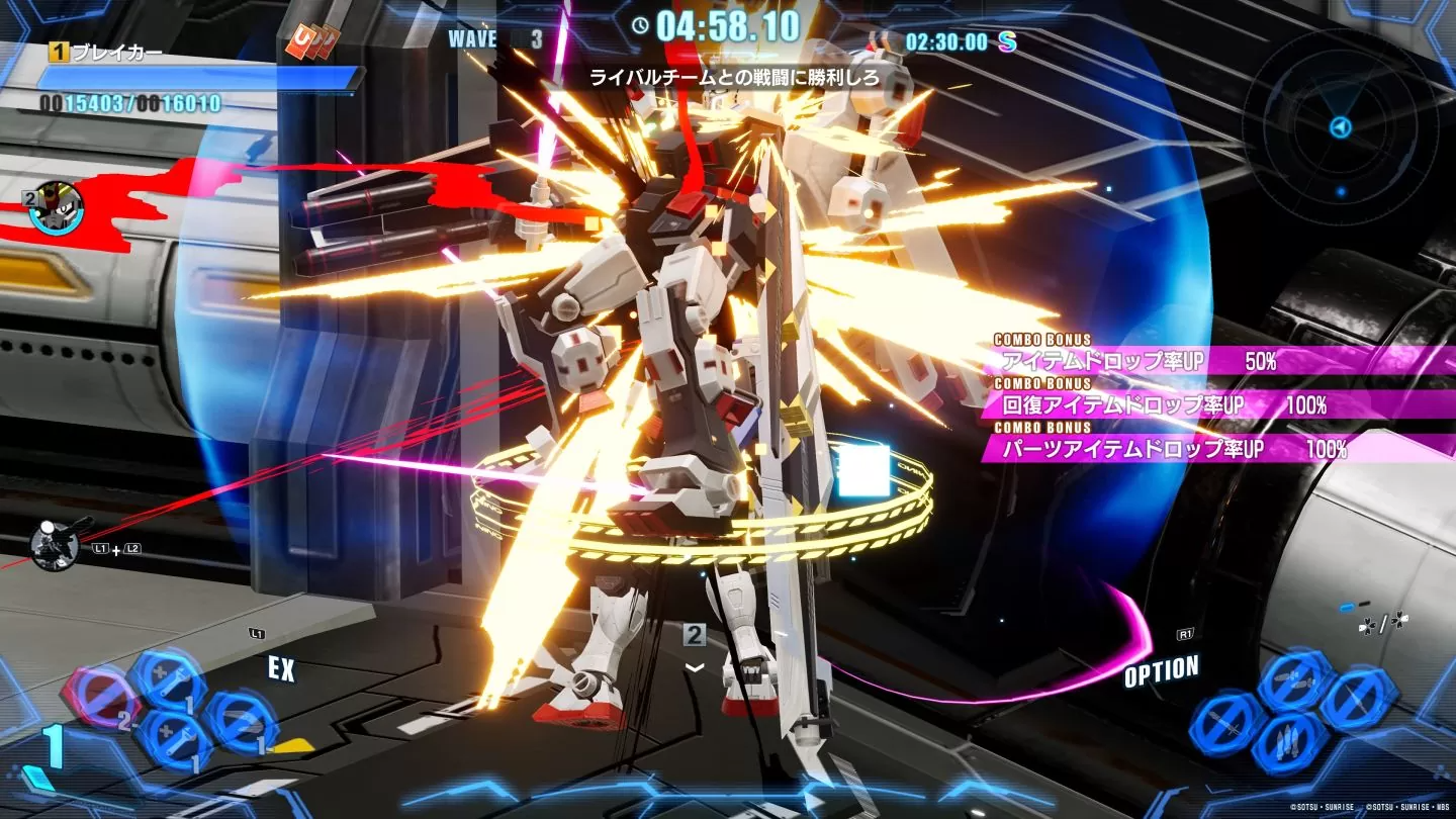 尤其是這次近戰武器能夠分開安裝的情況下,更能耍二刀流光劍打出流暢的連續攻擊。加上外部武器裝備,二刀流攻擊,搭配大型斬艦刀以及技能招式,讓每台組裝都有機會如能天使鋼彈打出如七劍攻擊的效果,還能追加傷害。