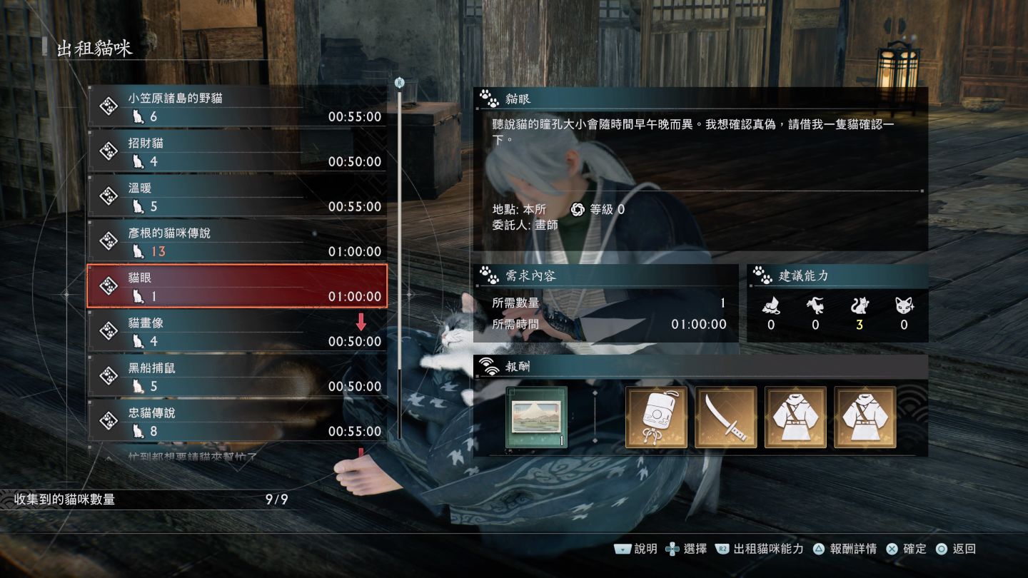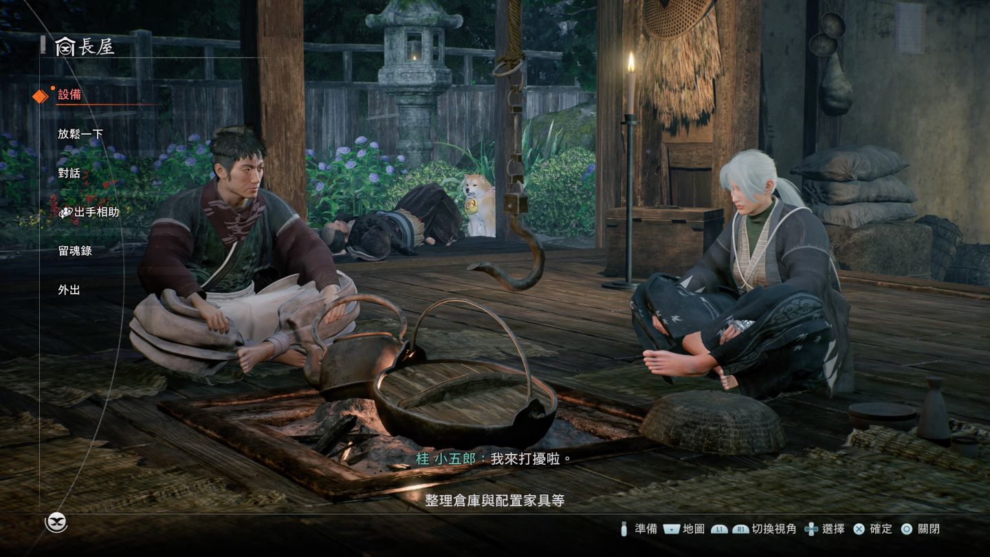 「長屋」做為玩家的根據地,到後面還可以派遣貓狗賺錢,完成任務幫玩家取得更多裝備與物資獎勵,完成的因緣任務也會開啟各種設施與功能,可反映出你作為一位無主浪人之後,經過一連串事件累積的羈絆成果。