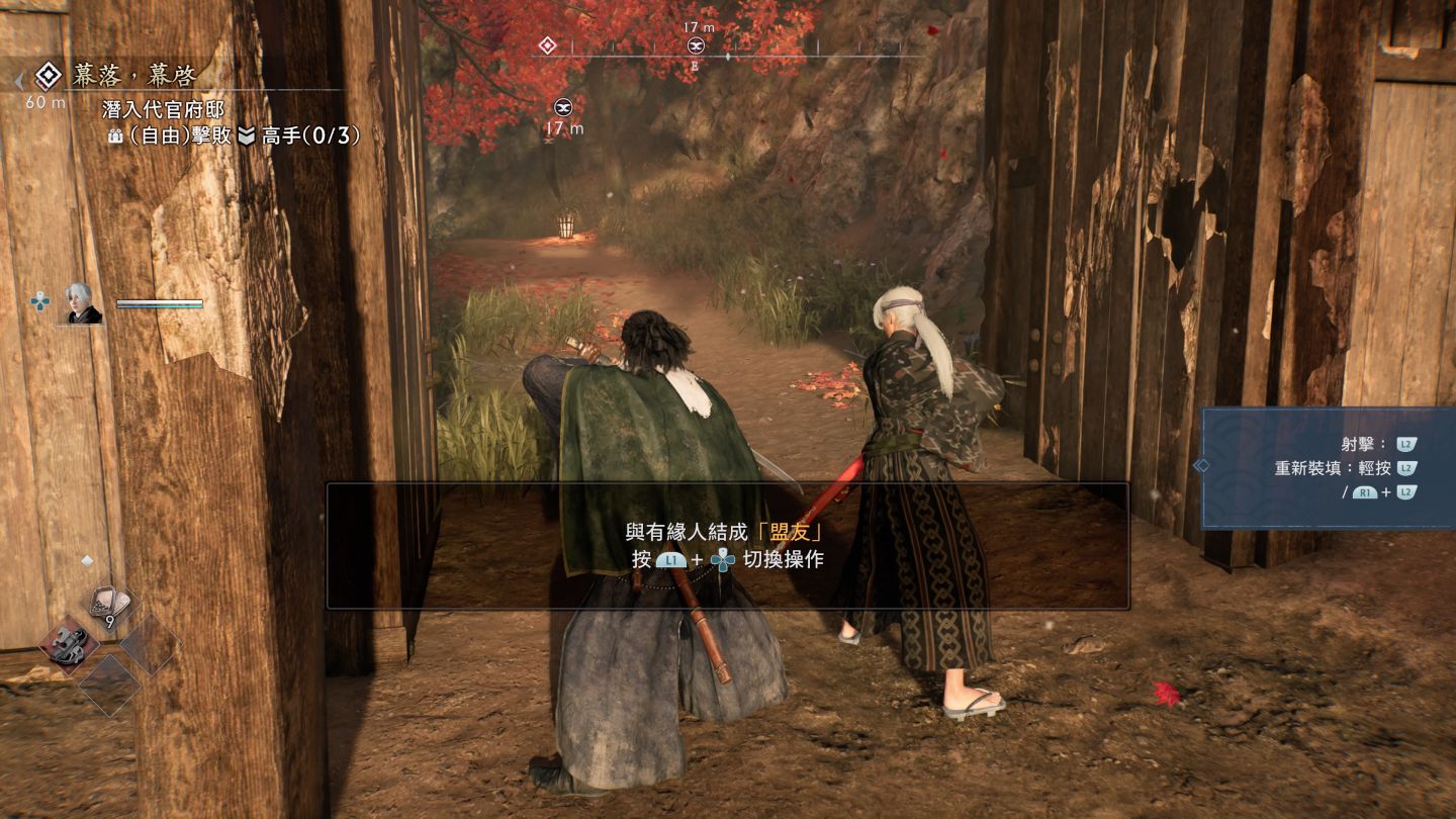 浪人任務中的關卡攻略,最多可帶兩名盟友出戰,但不在是只有 AI 操作,玩家也可以切換操作盟友,分散對手注意力,在初期玩家缺少流派的情況下,使用盟友對戰的效益高上許多,不過要注意以盟友討伐敵人的話,武器熟練度將以當下盟友的武器為基準提昇。