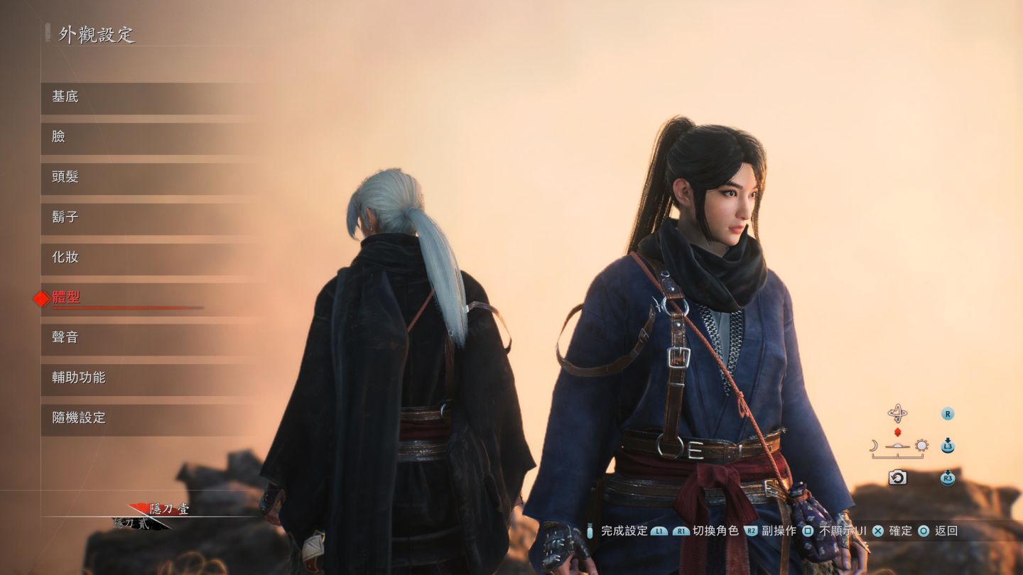 在幕末時代中,玩家扮演的主角是名為「隱刀」的特殊士兵,擅長劍術與忍術,並且兩人一組的形式活動,本作同 Team Ninja 的過去作品,玩家可自行打造喜愛的角色形象。但可惜的是,雖然有提供女性角色的選擇,但是實際動作骨架都還是沿襲於男性浪人的形象,可以說是有點便宜行事,或者是刻意不要讓女體化的主角出現。。