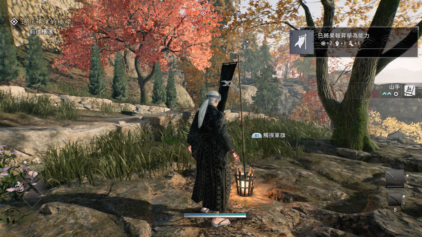 此外,由於還是 Team Ninja 的遊戲,本作雖然有類似《仁王》的誅死遊戲感,但是在開放世界中死亡的時候,就算沒有點開「隱刀的軍旗」這類開啟的傳送點,也會將角色復活在死亡的地區附近,這可能是受到了《艾爾登法環》的影響,能夠有效減輕探索死亡的挫敗感,不至於太浪費時間。