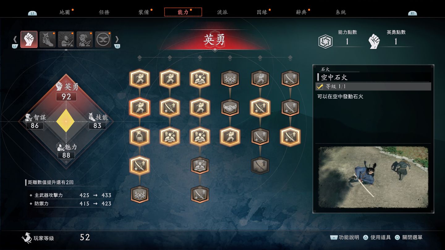 你可以通過使用技能點數來增強你的角色。這些點數是通過玩小遊戲、解放和探索更多區域,以及完成因緣任務等方式來獲得。此外,你還可以獲得英勇、技能、魅力和智謀點數。透過這些點數,改變戰鬥與他人溝通的方式。