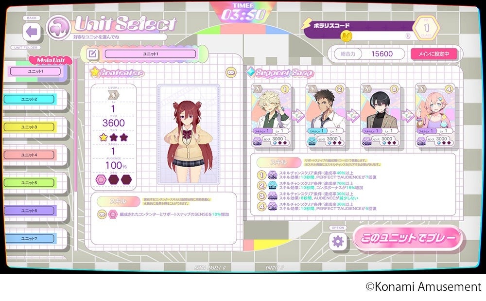 除了多樣化的音樂以外,《PolarisChord》另一個特色是養成元素,玩家可以培養遊戲中出現的原創角色並增加他們的親密度,隨著親密度上升,角色能力也會逐漸強化,讓遊戲過程更加順利,未來也會追加在直播節目當中活躍的人氣 Vtuber 到遊戲裡,他們也能和原創角色一起進行培養,粉絲們可以盡情在機台上享受偶像的全語音演出。