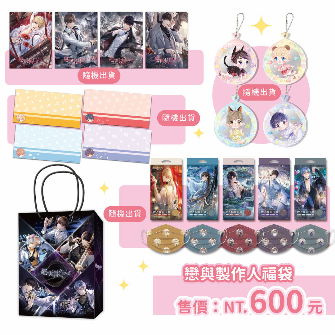 曼迪傳播特地為本次台中動漫節推出超值福袋推出超值福袋,六種任選、最低驚喜 3 折起,包含《名偵探柯南》《戀與製作人》《Fate系列》《犬夜叉》《火影忍者》等知名 IP 福袋,嚴選紀念週邊商品,袋袋都是經典中的經典。特別推薦《名偵探柯南》福袋,使用最新上映《特別總集篇 名偵探柯南 vs. 怪盜基德》主視覺製作紙袋,帥氣基德身影讓你在展場內走路都有風!此外還有多款指定 T 恤 150 元起,《戀與製作人》商品滿額 1314 元送限定桌曆等活動,四天展期讓你愈 Buy 愈快樂!