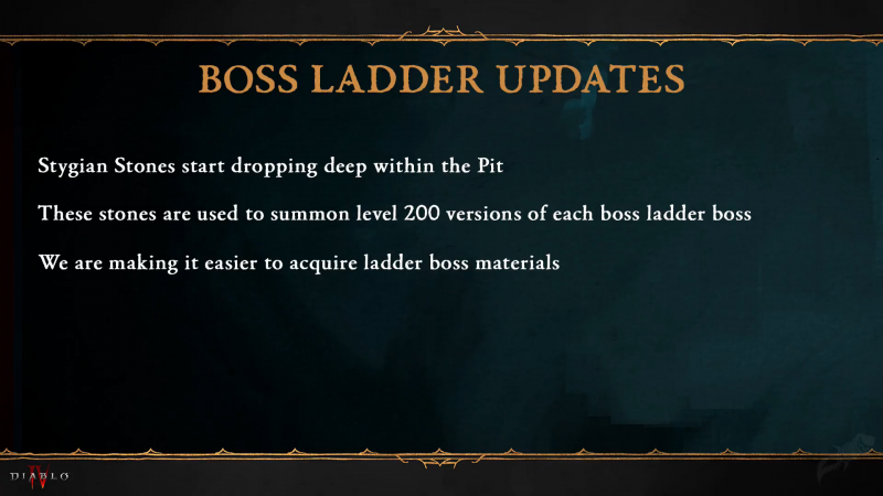 由暴雪娛樂製作發行的《暗黑破壞神4》(Diablo IV、D4),在 3 月 21 日清晨時進行營火閒聊直播,由社群總監 Adam Fletcher、副遊戲設計師 Charles Dunn、首席活躍職業設計師 Adam Jackson、以及遊戲副總監 Joe Piepiora 主持。本次除了釋出公開測試伺服器(PTR)詳細資訊之外,並透露了許多將於第 4 季中進行的大規模翻新更動。