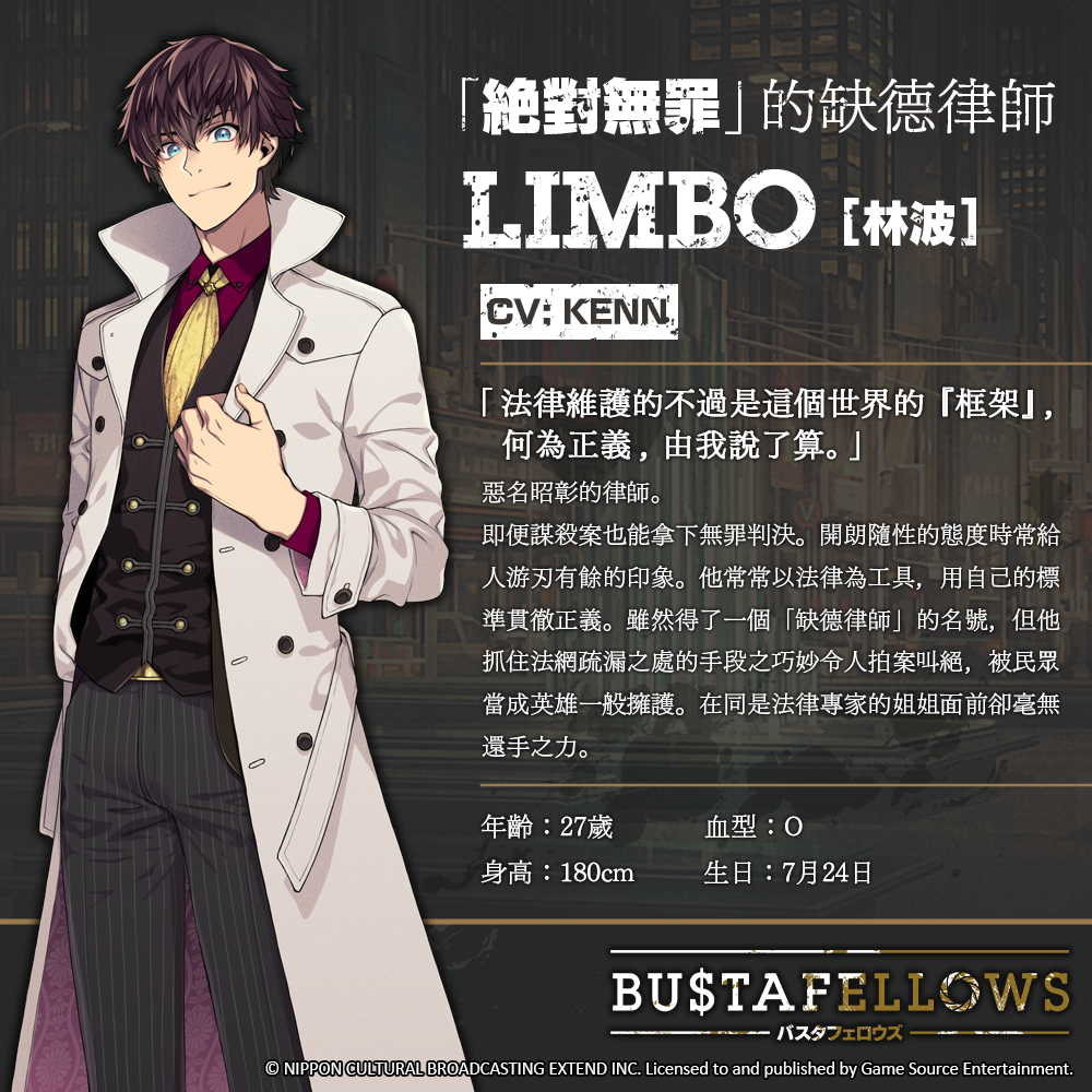 Game Source Entertainment(GSE)宣佈,與日本媒體內容製作公司 Nippon Cultural Broadcasting Extend 首度合作,預定於 2024 年 6 月 27 日推出,以犯罪懸疑為主題的女性向乙女遊戲《Bustafellows》Nintendo Switch 繁體中文亞洲版本,公開主要登場人物,以及首部繁體中文版本官方預告片。