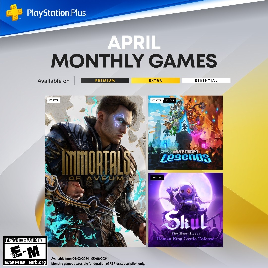 SIE 公開 4 月份預定針對 PS Plus 會員所推出的免費遊戲陣容,包括《Immortals of Aveum 亙古魔戰》、《Minecraft Legends 我的世界:傳奇》與《Skul:The Hero Slayer 孤骨:英雄殺手》等三款遊戲,至於免費遊玩時間則是自 4 月 2 日起至 5 月 6 日為止。