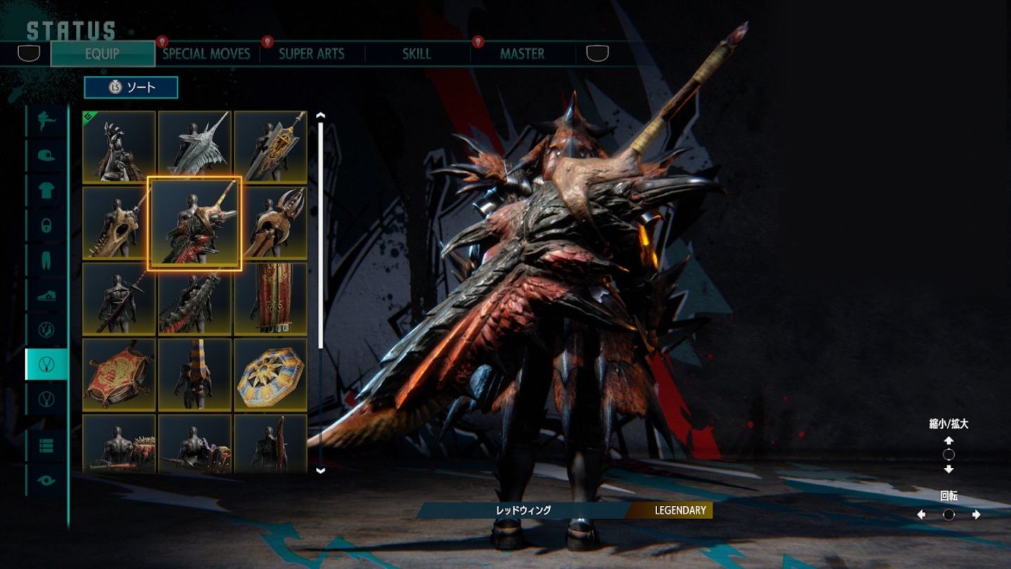 以《Monster Hunter》系列中為人熟悉的武器為原型的配件,現已於對戰大堂的大堂道具商店中發售!可以使用 Fighter Coin(FC)或 Drive Ticket(DT)購買。能夠裝備多種武器作為配件,因此可以根據自己的喜好進行自定義!