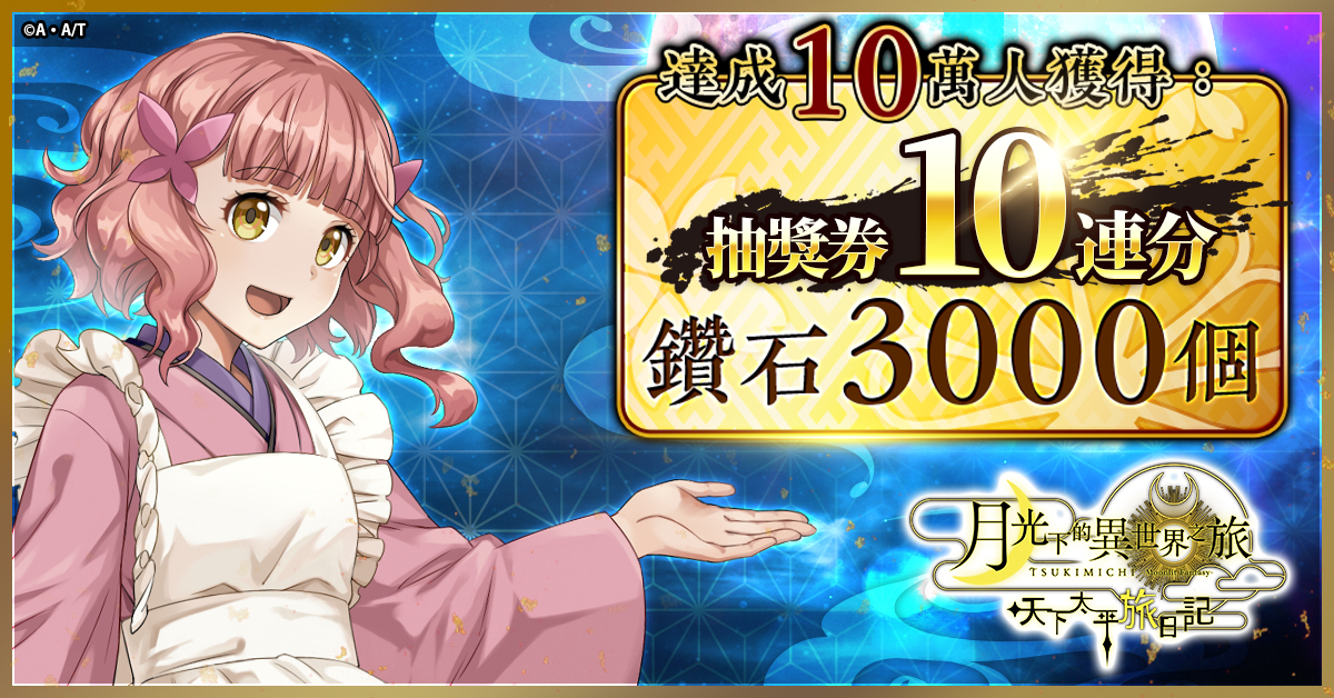 事前登錄者數量達到 10 萬,可獲得「鑽石」和「抽獎券 10 連份」!在抽獎中,可以獲得動畫中的角色人物!