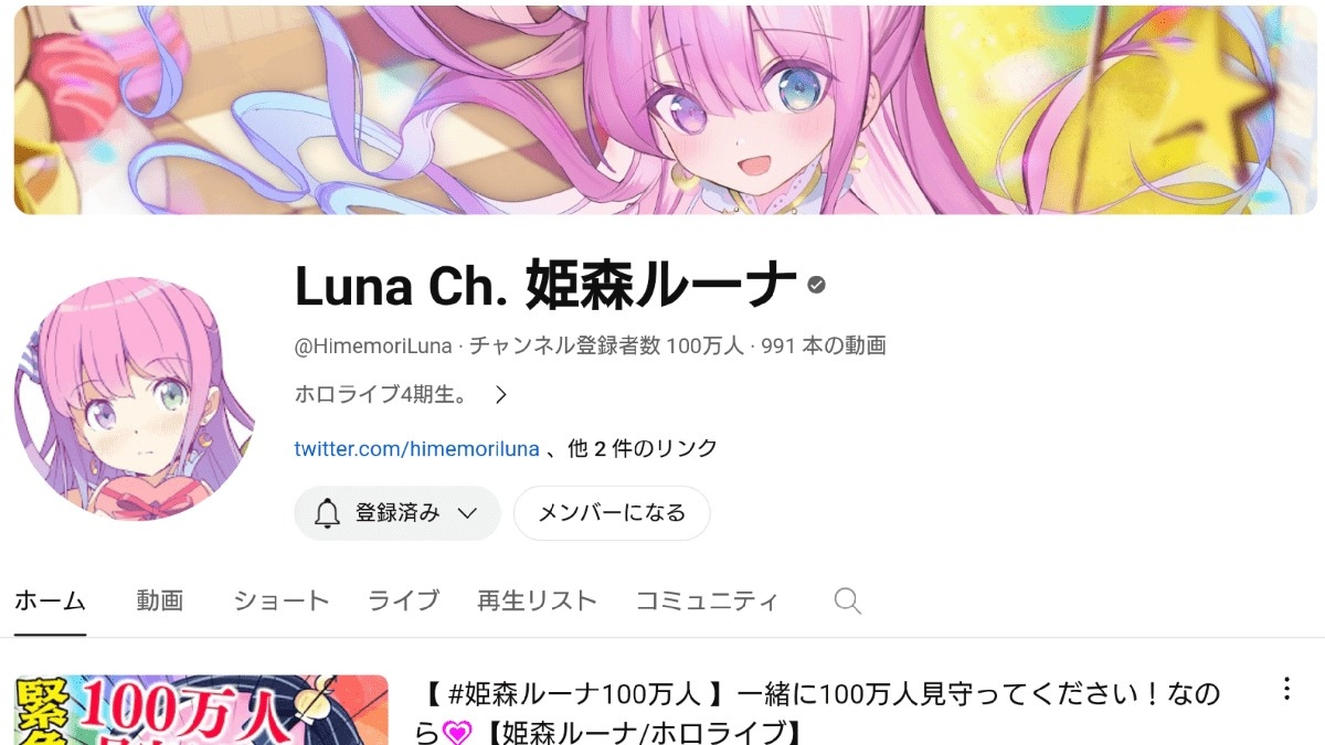 hololive 四期生成員「姬森璐娜」(姫森ルーナ)於 4 月 2 日晚間百萬耐久台直播中正式突破百萬訂閱,至此四期生全員摘下金盾。