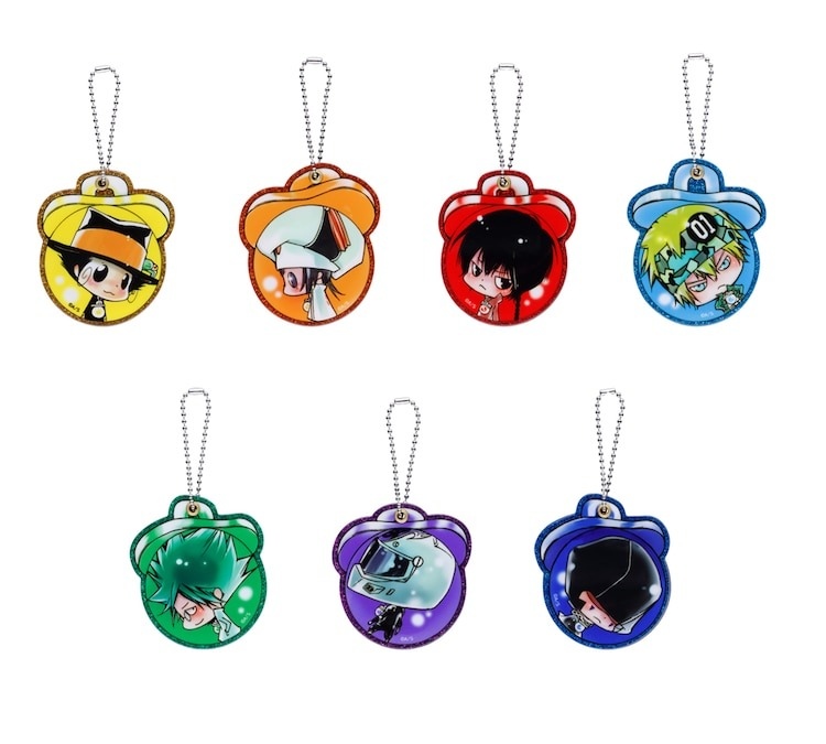 展場周邊方面,《家庭教師 HITMAN REBORN!》將推出奶嘴型迷你化妝鏡、彭哥列家族大毛巾;《élDLIVE 宇宙警探》將推出徽章、隨機明信片;《鴨乃橋論的禁忌推理》將推出痛包、壓克力立牌等週邊。單筆消費 3000 日圓將可以獲得限定特典《家庭教師 HITMAN REBORN!》自拍風格透卡,共有 21 款可以蒐集。