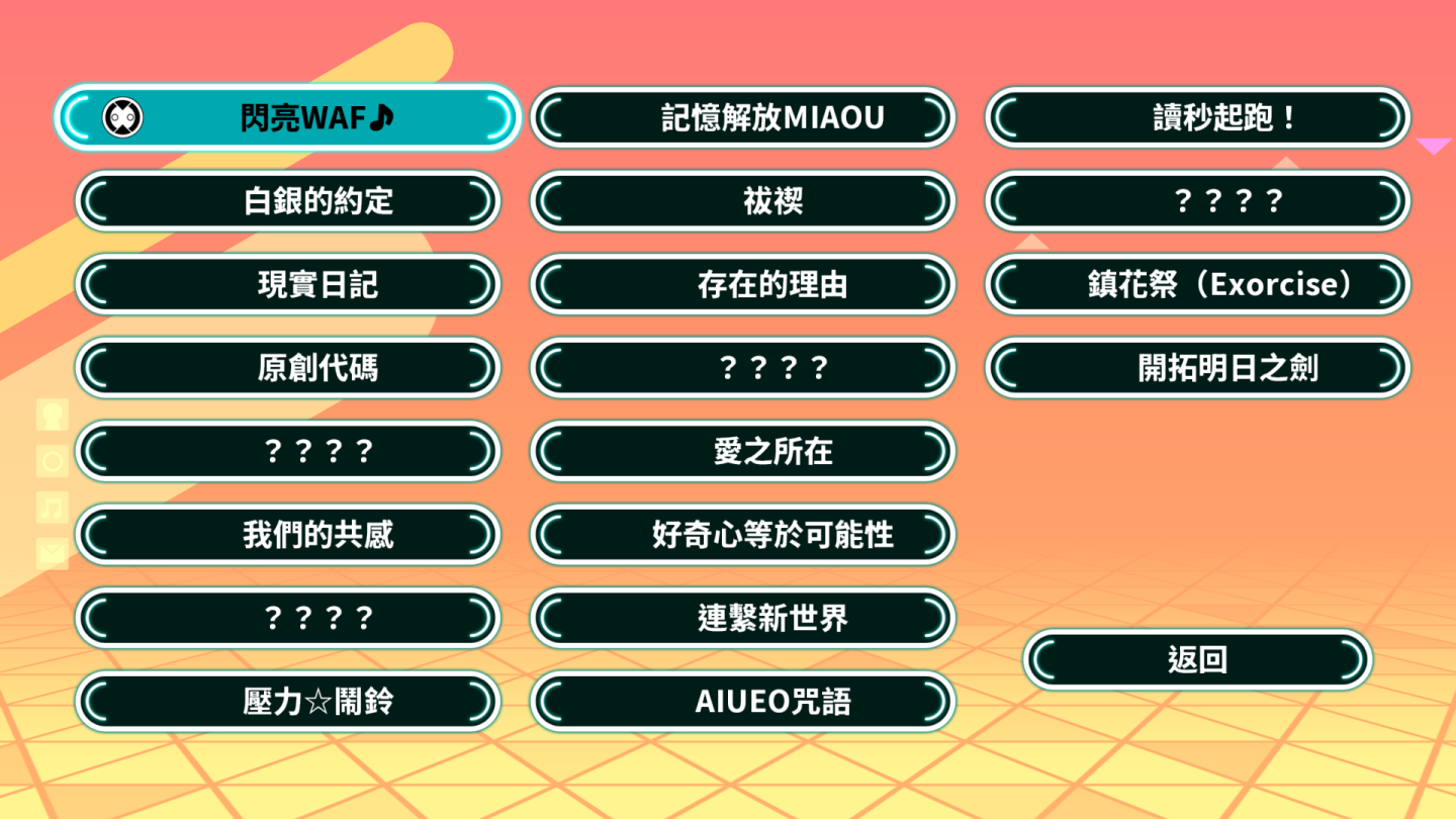 此外,超過一定分數後會作為 BGM 播放的「由 RoRo 演唱的歌曲」,可收集的曲目多達 19 首(另含 1 首 BGM)。附帶一提,能夠在眾多歌曲的襯托下暢遊爽快益智遊戲的《RoRo PuzzMiX 落落謎可思》,已於 2024 年 4 月 5 日緊急發售 Nintendo Switch 下載版。