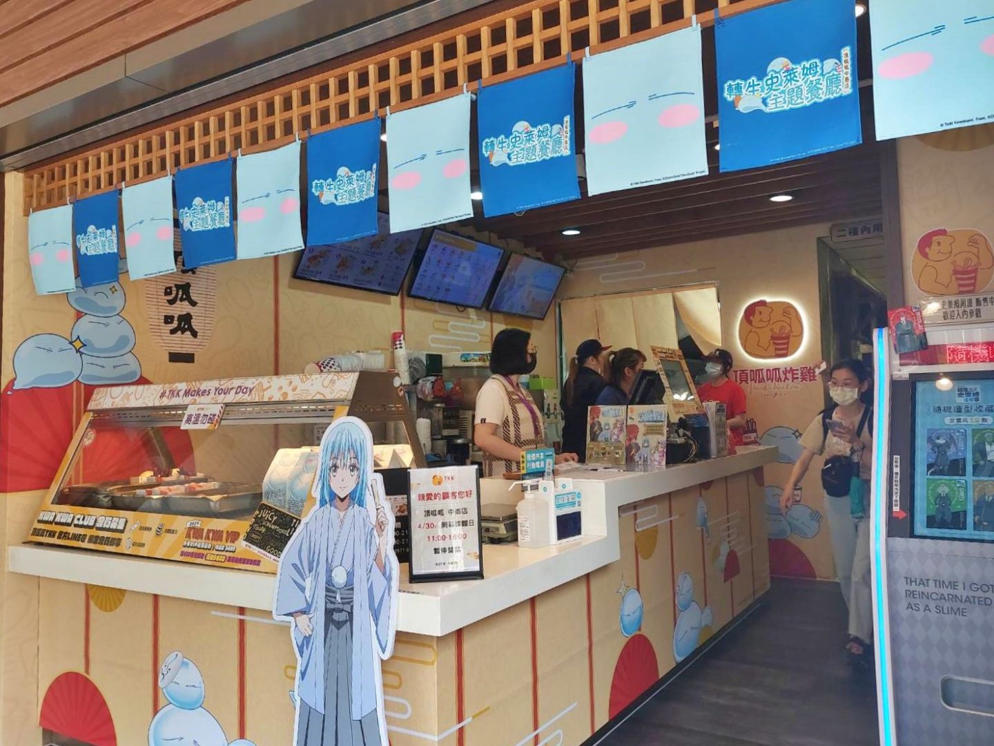 頂呱呱歡慶五十週年,從去年積極布局許多跨界品牌合作大搞創意,這次與動畫代理木棉花共同推動《關於我轉生變成史萊姆這檔事》合作,今年四月開播動畫第三季,5/1 起合作店面開跑,將頂呱呱中崙店重新打造為日系風格,並還原動畫場景,現場有超多主要角色群拍照空間,一樓更有週邊販售區,並有全台獨家首賣商品搶先上架!二樓變身華麗用餐空間,還有沉浸式體驗大螢幕,而絕不能缺少的就是令粉絲瘋狂的聯名特色餐點,保證好吃好玩又超級好逛!