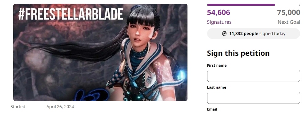該請願連署稱《劍星》已成為言論自由的文化燈塔,而玩家們紛紛支持它,因為它為遊戲文化帶來更好、更自由的創作,所有玩家均可簽署請願書附加說明,最終將會送印並交付給 Shift Up 及 Sony 北美辦事處。這份連署目前已獲得 5 萬玩家支持,並持續增加中。