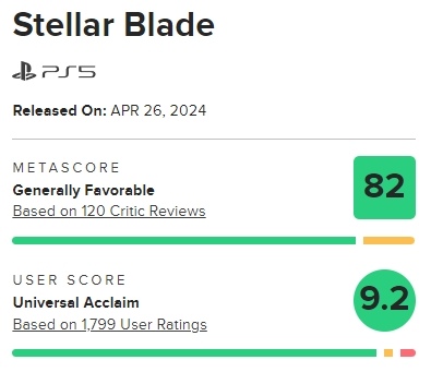 這些因造就本次《劍星》metacritic 玩家均分遠超過媒體均分的果,據富比士先前報導,《劍星》是 PS5 歷史上用戶評分第 3 高遊戲,僅次於 9.2 分的《惡靈古堡4》、《電馭叛客2077》。然而至目前為止《劍星》共獲得 1,799 則玩家評分,均分提升為 9.2,已追平該兩款遊戲,並列 PS5 平台最高使用者評分遊戲。