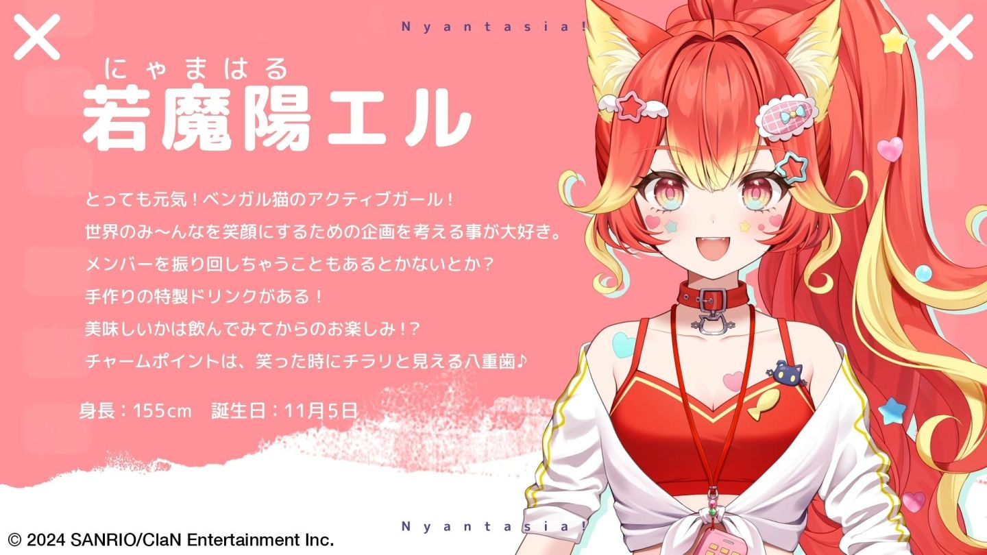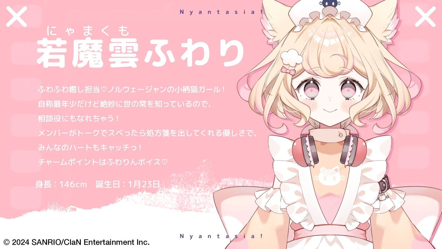 日本三麗鷗(サンリオ)與日本電視台子公司 ClaN Entertainment 共同合作的 Vtuber 項目「Nyantasia!」(にゃんたじあ!),在 5 月 4 日宣布新成員介紹 PV,預定 5 月 24 日舉辦出道直播。