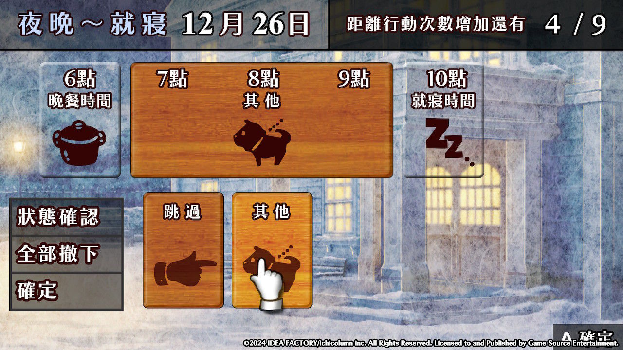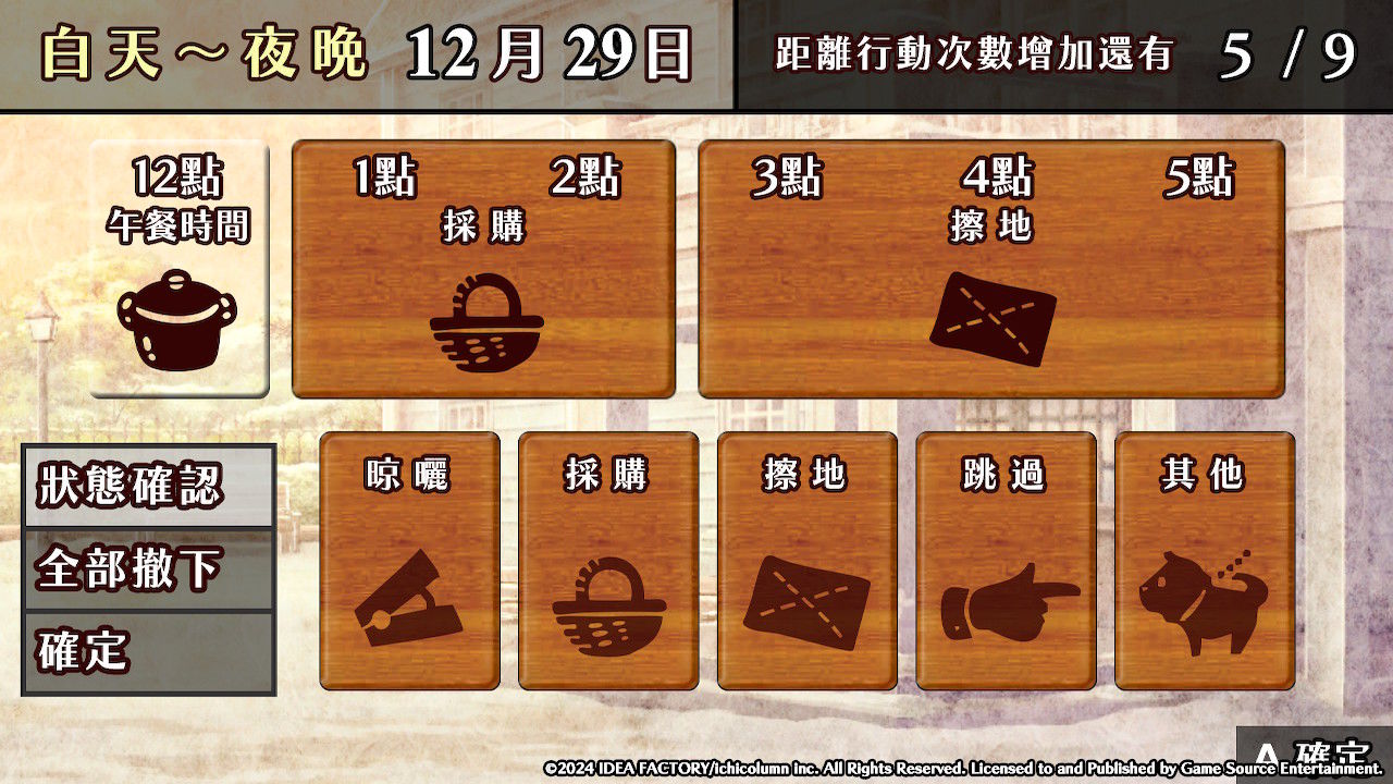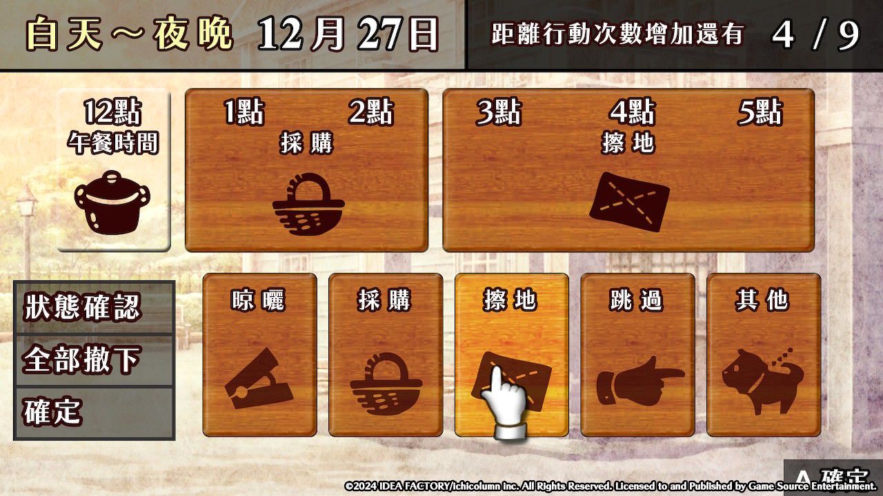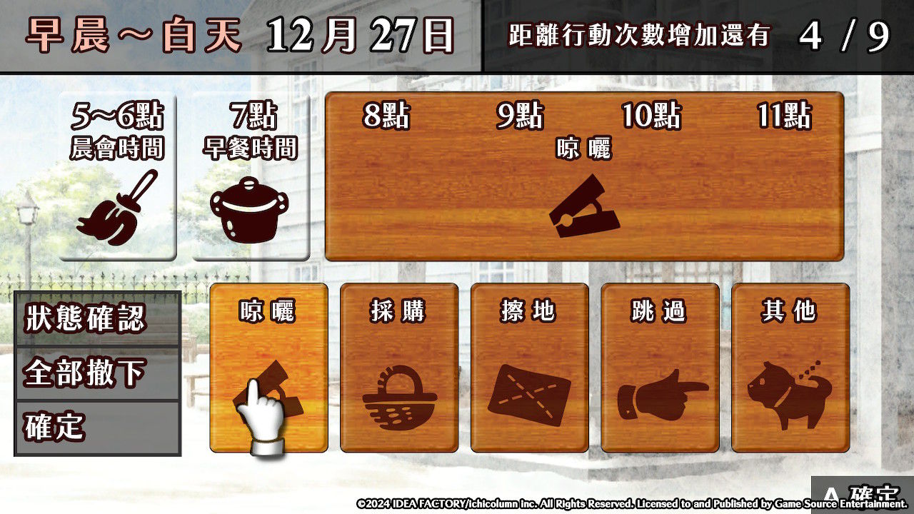 【1】從早上8點開始安排!雖然傭人從早上5點就開始工作了,但玩家能夠設置的是8點之後的日程。這裡可以安排上午的工作。