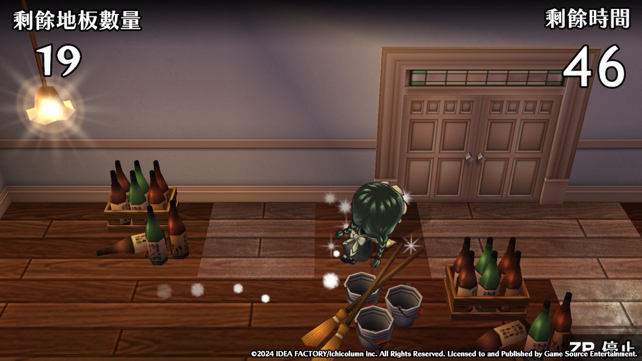【2】擦地:這個小遊戲要求在規定時間內,把走廊指定區域的地板用毛巾擦乾淨。要擦的地板的範圍會根據數值增長而變大。