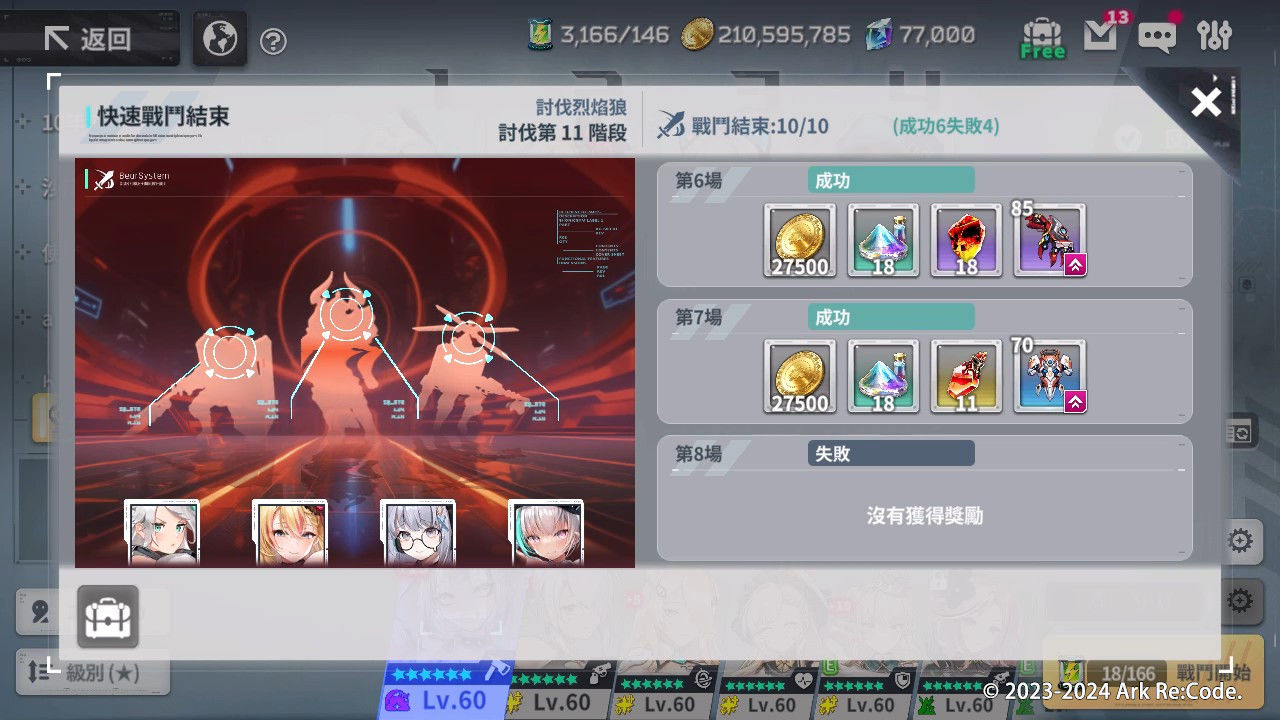 快速戰鬥會以玩家所派出的隊伍進行高速演算,如果隊伍實力不足可是會失敗的喔!