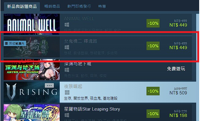 《女鬼橋二 釋魂路》自台灣時間 5/9 下午五點在 Steam 平台全球上線後,不少玩家早就守在電腦前等著搶先試膽,開賣短短不到半天時間內,衝上平台「新品排行榜」第二名,並躍上「暢銷商品」排行榜第四名,創下極佳成績。