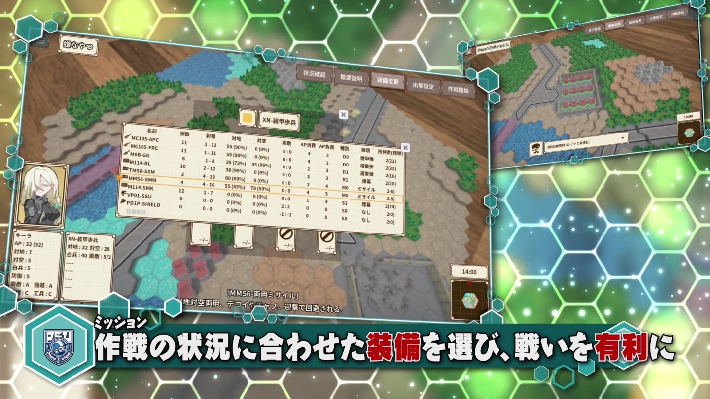 另外本作的一大特色,就在於加入視線與射線的概念。玩家可以利用山壁陰影等遮蔽物來躲避敵人視線,藉此來慎重地進行索敵,如此一來就可以在發現敵人時搶佔優勢讓作戰進行得更加順利;或是藉此善用地形與裝備組合來進行有效率的攻擊,讓我方能立於不敗之地痛宰敵人,也讓遊戲玩起來更具趣味。