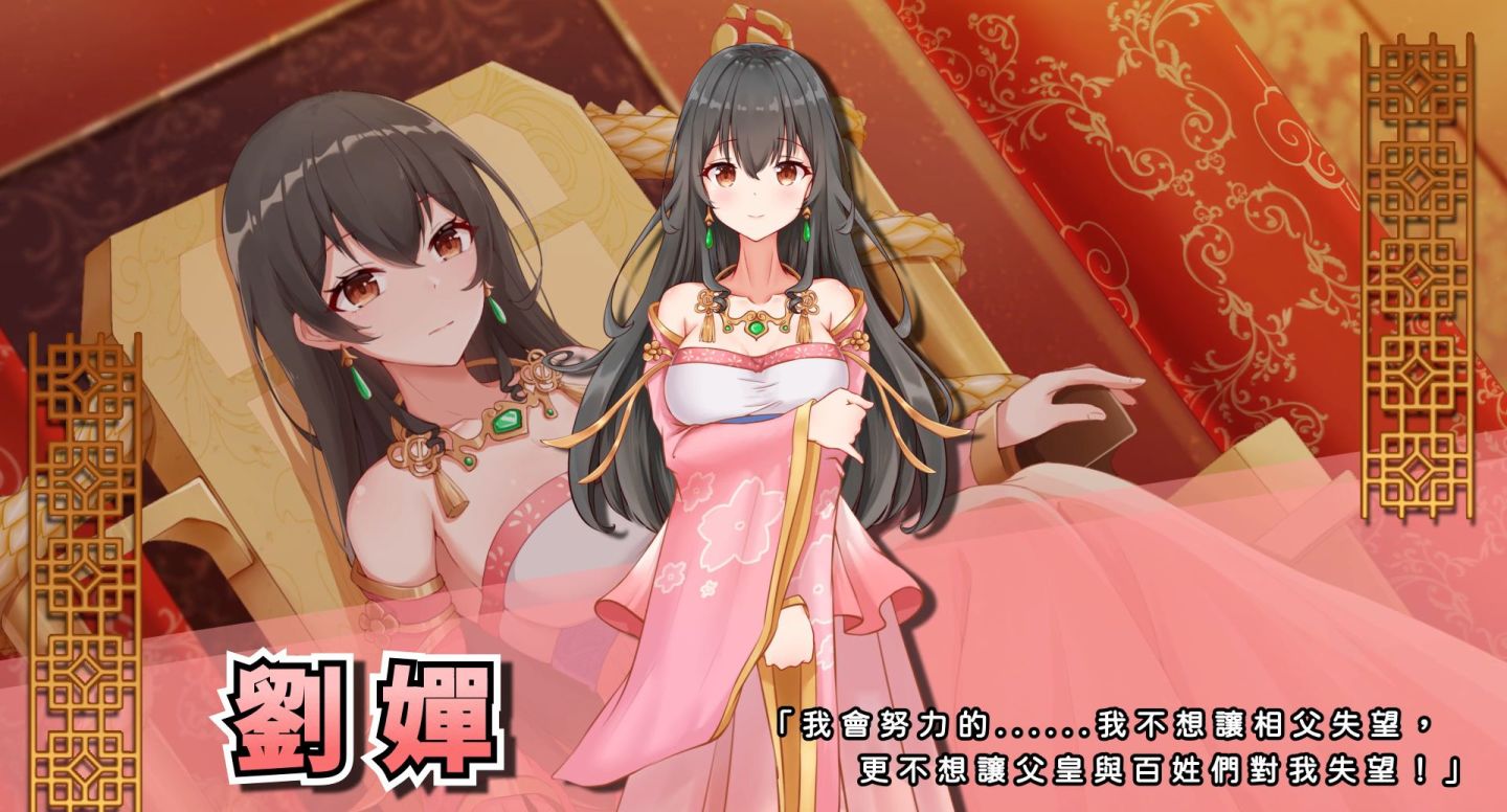 遊戲玩法包括以視覺小說方式推進劇情,以及養成方式的「國家政策」與劉嬋的「個人行程」安排,在遊戲中每個月可以決定兩項國家政策,三項培養劉嬋的安排。政策決定會影響國家的數值,對於劉嬋的培養除了安排【學習】之外、也可以選擇【談話】、【出遊】、【休息】來讓劉嬋得到平衡的生活,並培養好感。每一個選擇與安排,都將影響著劉嬋與這個國家的命運。