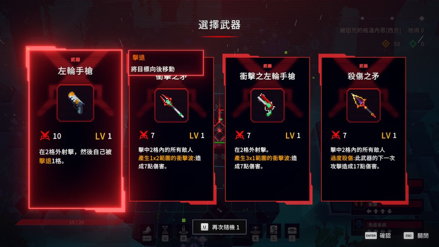遊戲的主線流程在 10 個小時左右,但可別忘了這是一款肉鴿遊戲,在你首次通關某一區域後,將會解鎖自定義關卡的功能,在選擇提升難度的同時也能得到更多獎勵;除了 Roguelite 遊戲常規的局外成長,某些強力的武器和遺物需要玩家達成特定條件才會解鎖。