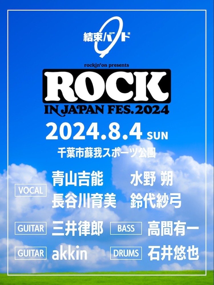 另外樂團方面,由三井律郎及 akkin 擔任吉他演奏、高間有一擔任貝斯手、石井悠也擔任鼓手。活動當日還有 LiSA、8/10 則有樂團 MyGO!!!!! 等其他與動畫相關的樂團、歌手陸續登場。「ROCK IN JAPAN FESTIVAL 2024」將在 8/3、8/4、8/10、8/11、8/12 五天舉行。