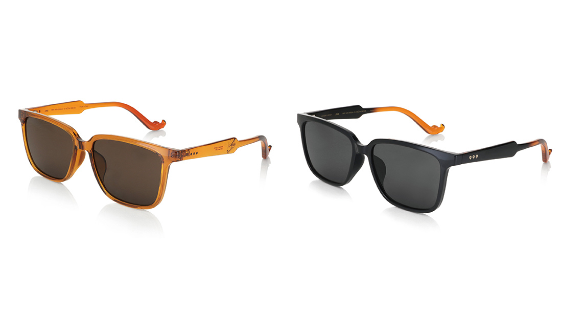 個性的皇冠框形太陽眼鏡,鏡腳尾端有漩渦一族家紋,帶出跳色設計,橙色及黑色太陽眼鏡挑戰大膽風格,以九尾為設計靈感,鏡腳汲取鳴人九尾模式元素,分別以九尾頭像或六道仙人模式的勾玉,搭配漸層色的火焰裝飾,彷彿鳴人體內的九尾跑出來了。