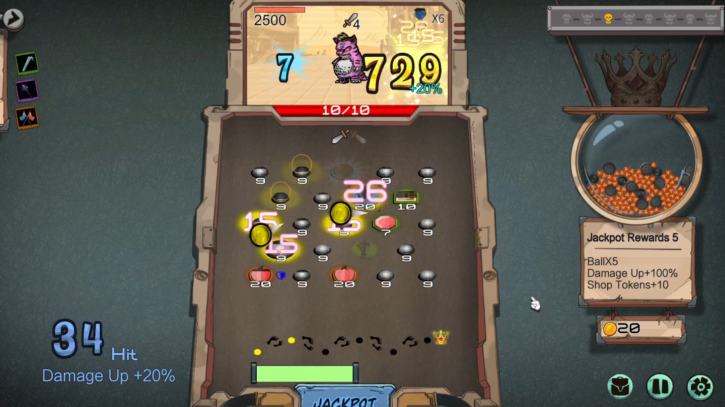 至於《一釘能贏》,是 Steam 上的輕度 Rogue 遊戲,玩家可以用彈珠觸發釘子來產生不同的效果,構築出不同的強大組合。遊戲內還有不同職業供選。每個職業有各自的機台特性,考驗玩家對機制的理解。