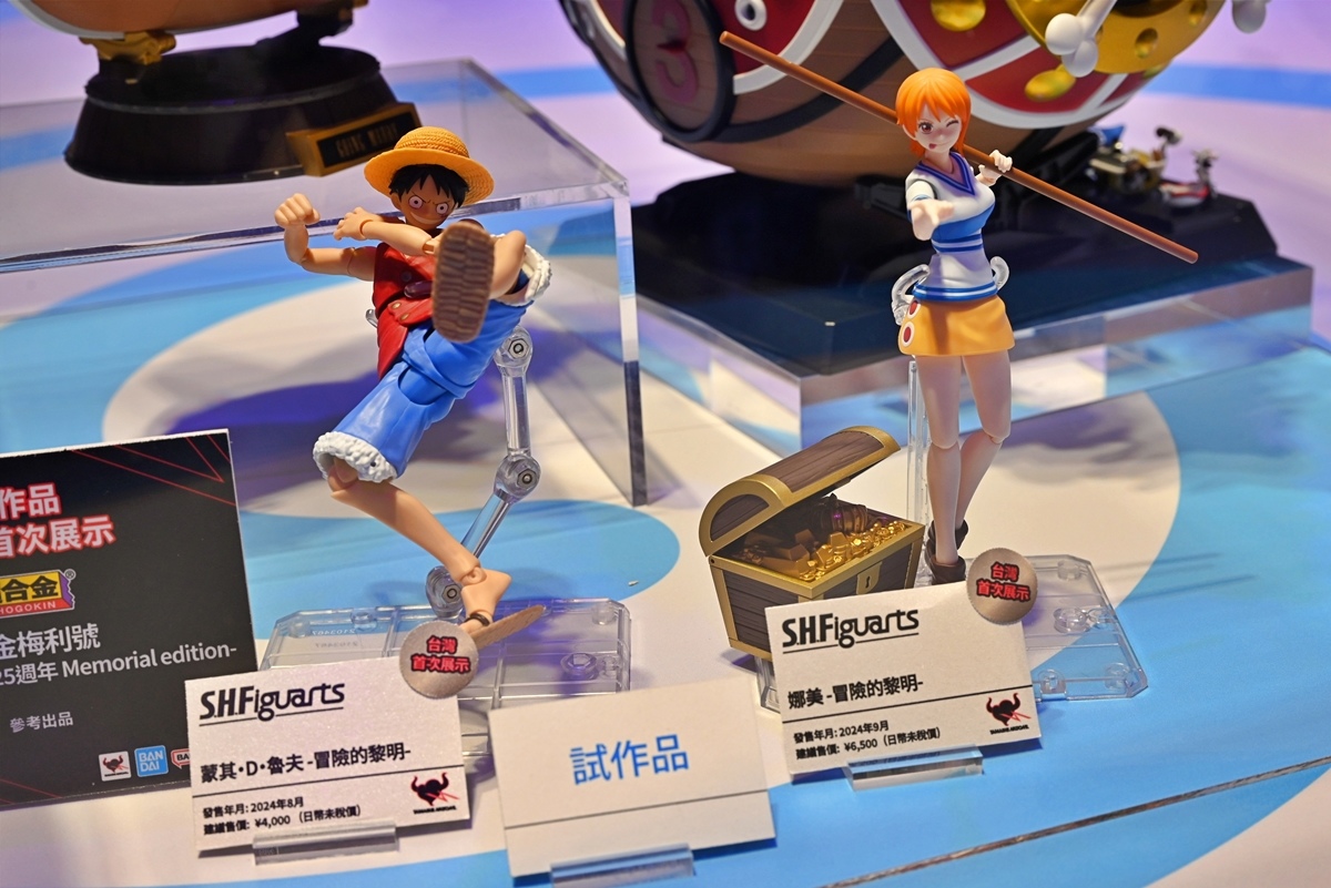 「TAMASHII EXHIBITION 2024 IN TAIPEI」今年特別規劃人氣 JUMP 作品《航海王》系列展區,並將特別展出以東方藍篇章造型登場的「S.H.Figuarts 蒙其・D・魯夫 -冒險的黎明-」、「S.H.Figuarts 娜美 -冒險的黎明-」,要和喜愛《航海王》的粉絲們一起回歸動畫系列起始篇章。另外為了紀念動畫 25 週年,也將展出全球首度公開的「超合金黃金梅利號 ONE PIECE 動畫25周年 Memorial edition-」最新試作品,粉絲們絕對不能錯過。