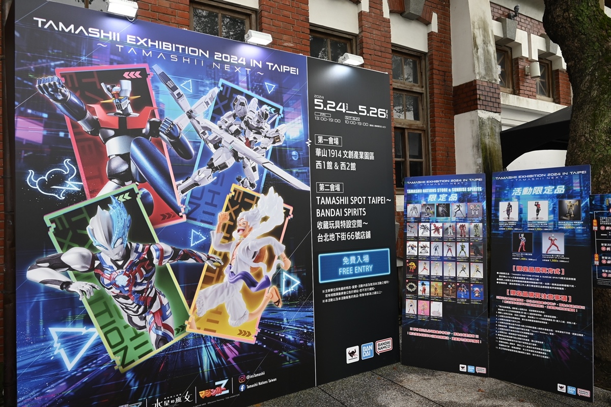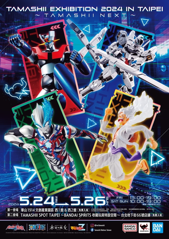 台灣萬代南夢宮收藏玩具事業部主辦的年度玩具盛事「TAMASHII EXHIBITION 2024 IN TAIPEI~TAMASHII NEXT~」於 2024 年 5 月24 日(五)至 5 月 26 日(日)在華山文創產業園區西 1 館、西 2 館及台北地下街的 TAMASHII SPOTTAIPEI~BANDAI SPIRITS 收藏玩具特設展示空間盛大登場!