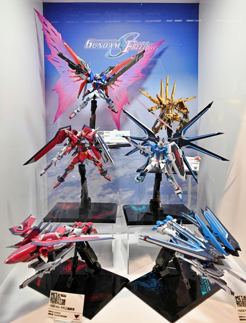 除此之外,邁入 50 週年的超合金系列展區將會展出使用電鍍塗層散發金光的「超合金魂 GX-105G無敵鐵金剛CHOGOKIN 50th Exclusive」、「超合金魂 GX-71 百獸王五獅王CHOGOKIN 50th Ver.」,也將向全球首次公開「最強機動」的「超合金魂」試作品。同時,最新動畫電影《機動戰士鋼彈 SEED FREEDOM》中出現的「METAL ROBOT魂<SIDE MS>命運鋼彈 SpecⅡ」試作品也將一同在展區亮相,讓粉絲們大飽眼福。