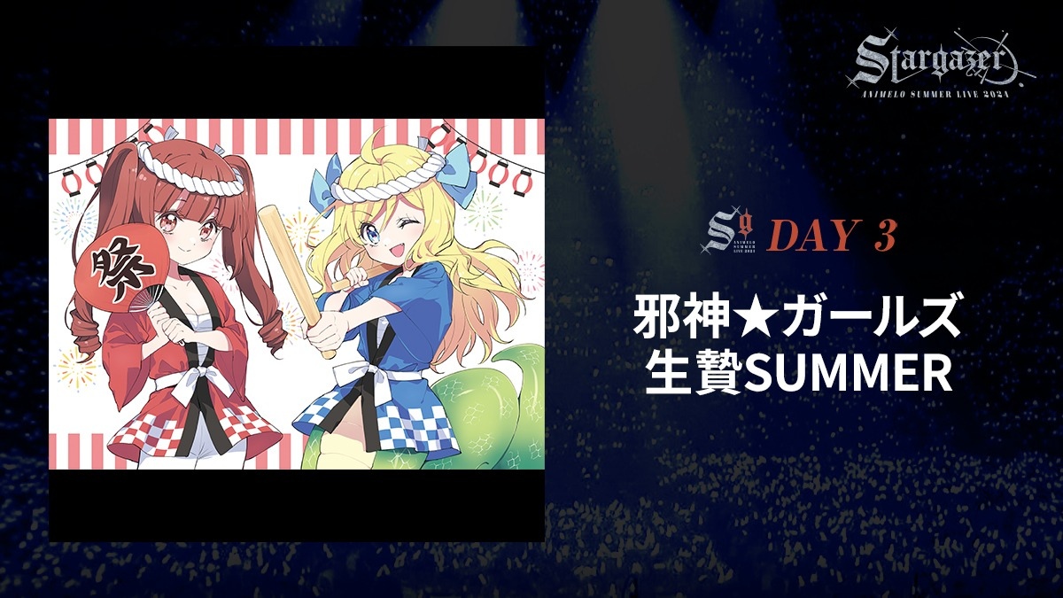 9/1 有《小邪神飛踢》特別團體「邪神★GIRLS 活祭品SUMMER(邪神★ガールズ 生贄SUMMER)」參戰,詳細登場名單將於 6/1、6/2 舉辦的粉絲活動「小邪神 Fes2」中公開;另外還有《勇氣爆發 Bang Bravern》聲演碧勇的鈴木崚汰、聲演路易斯史密斯的阿座上洋平一同登場,最終日是否會將雙炎組合與聲演布雷邦的鈴村健一一起安排在壓軸,也值得期待!