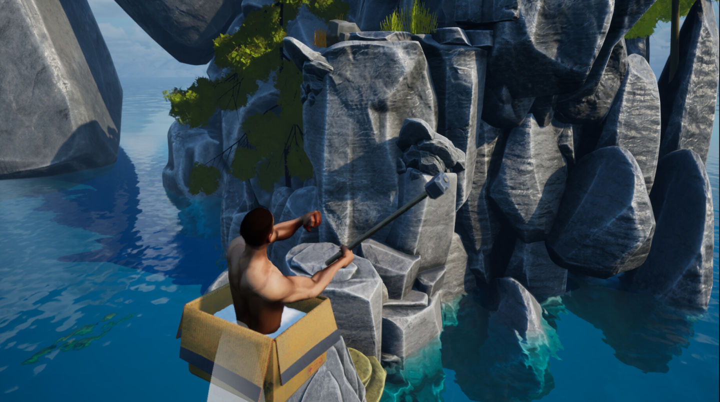 《One Box One Goal》是一款受到《和班尼特福迪一起攻克難關》(Getting Over It with Bennett Foddy,又稱壺男)啟發,並獲得該開發者允許發布的動作遊戲,玩家將扮演一個被裝在紙箱裡的男子,運用手上的錘子抓住岩石,在狹隘的支點上網目的地前進。