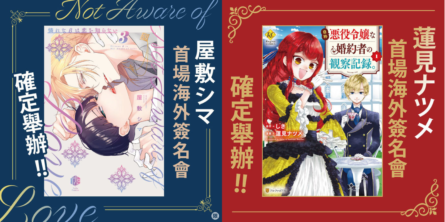 2024 漫畫博覽會即將於 7/25~7/29 在台北世貿一館登場,長鴻出版社邀請日本漫畫家屋敷シマ以及蓮見ナツメ兩位老師來台舉辦簽名會。兩場簽名會將在漫博會大會 A 舞台進行,參加資格會在長鴻出版社官網事前登記抽籤,詳細資格組內容及販售資訊將陸續公開,敬請關注長鴻出版社官網及粉絲團!